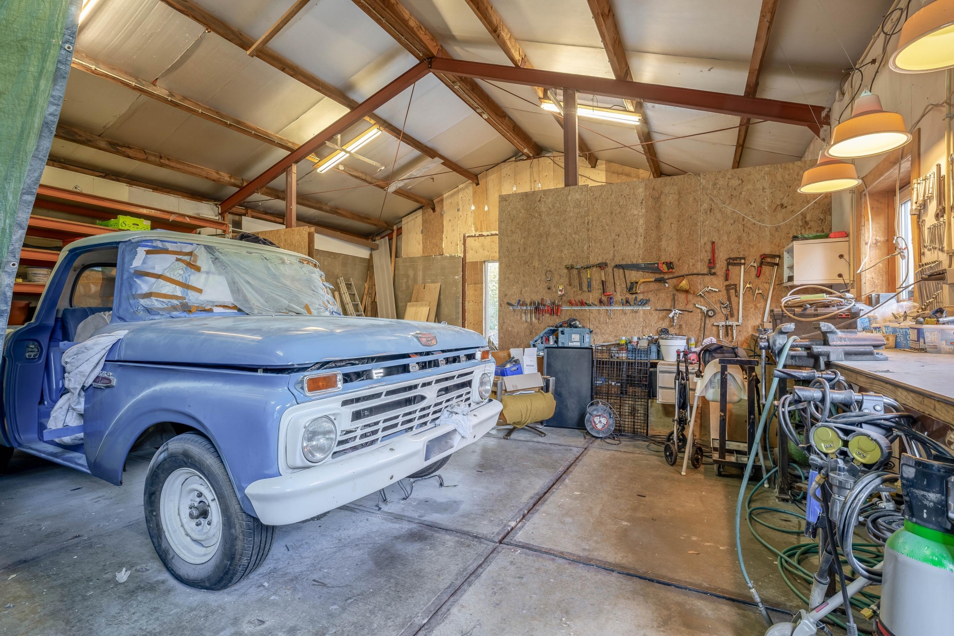 Een van de grote pluspunten van dit huis is het onderhuis en de enorme schuur op het perceel. Het onderhuis biedt veel praktische ruimte en kan op verschillende manieren worden gebruikt. Dankzij de grote garagedeur is deze ruimte uitstekend geschikt als garage, werkplaats of opslagruimte.
