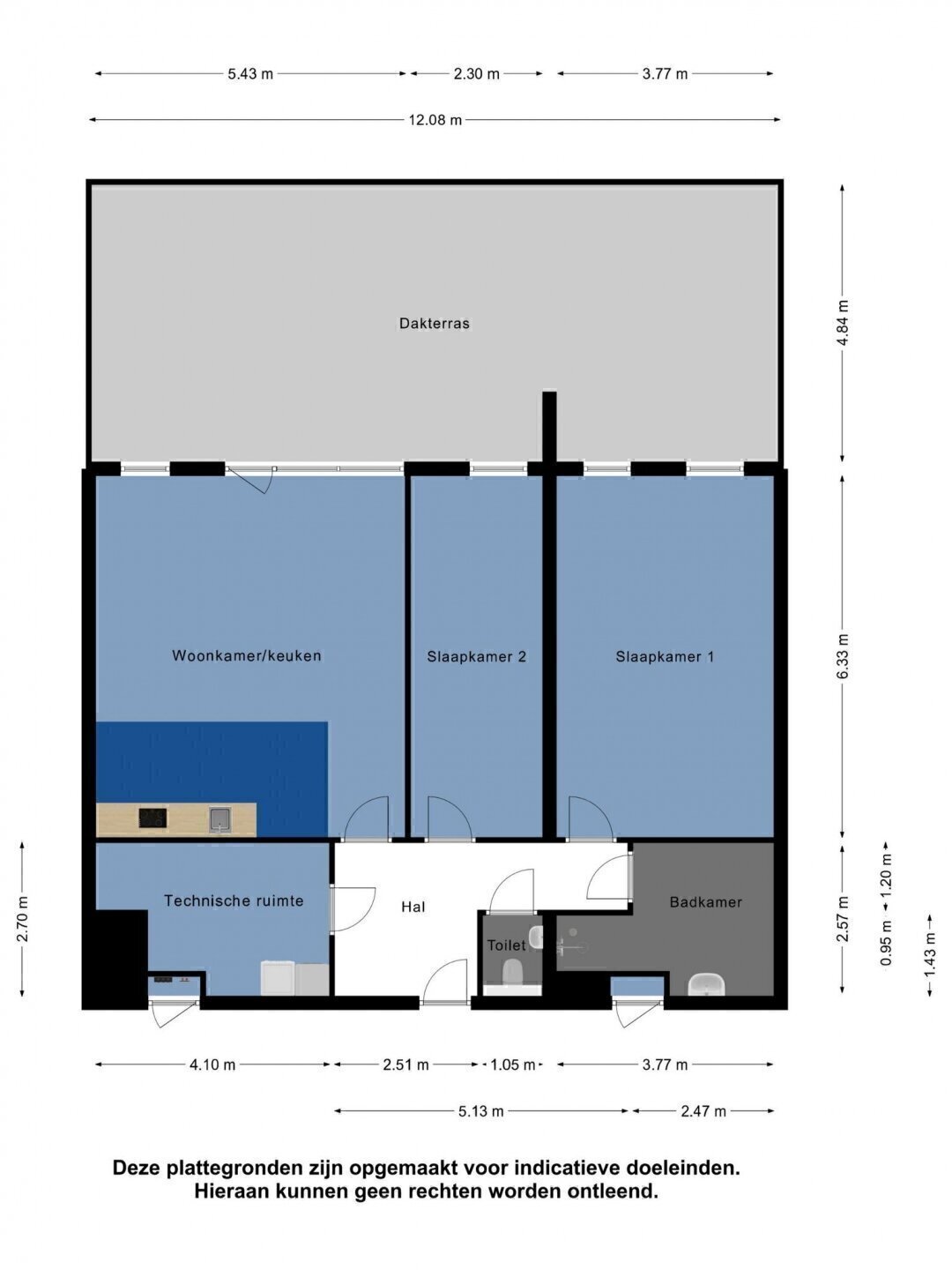 Ervaar het vakantiegevoel aan huis met dit royale terras in combinatie met het woonoppervlakte van 104m2. Woonkamer en keuken zijn een. Verdiepingshoge ramen geven een fraai zicht op het terras. Twee slaapkamers telt het appartement, of een grote slaapkamer en een werkkamer. Met een ruime badkamer en een technische ruimte met voldoende opbergmogelijkheden heeft u het gemak van alles op een verdieping.