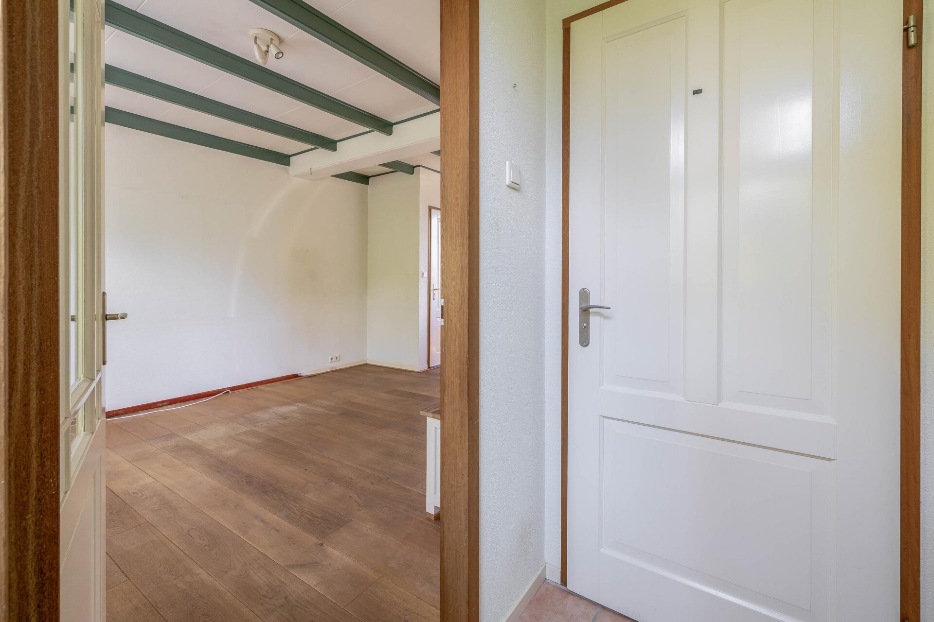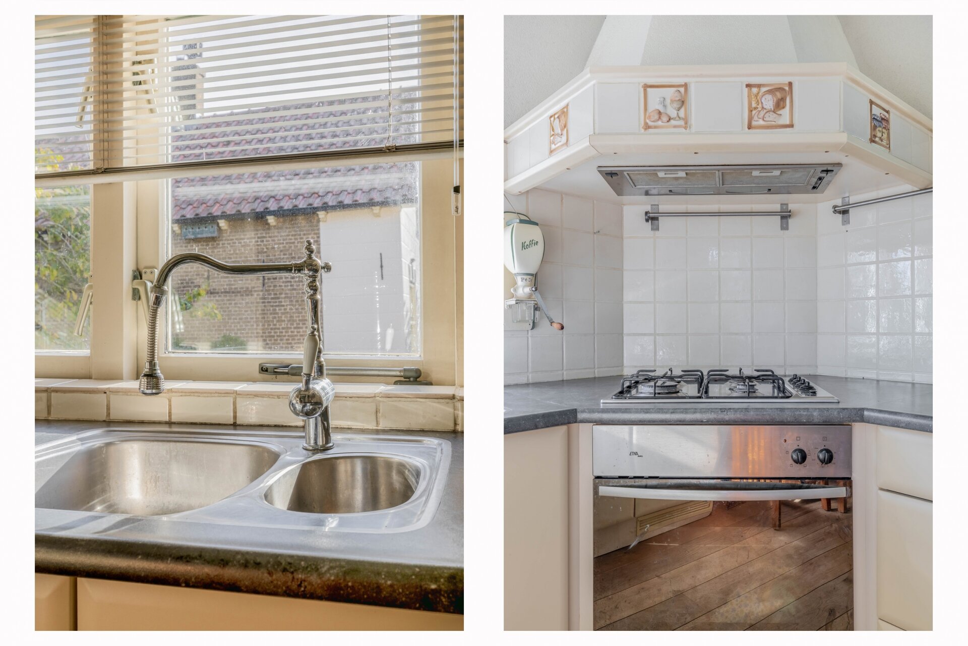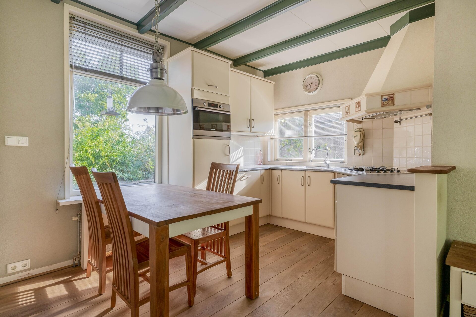 Zodra je binnenkomt, valt het natuurlijke licht op: de woonkamer en eetkeuken hebben grote ramen en een fijne lichtinval. De houten vloer en het balkenplafond geven de ruimte een warme, landelijke sfeer. De open keuken is netjes en voorzien van de nodige inbouwapparatuur.