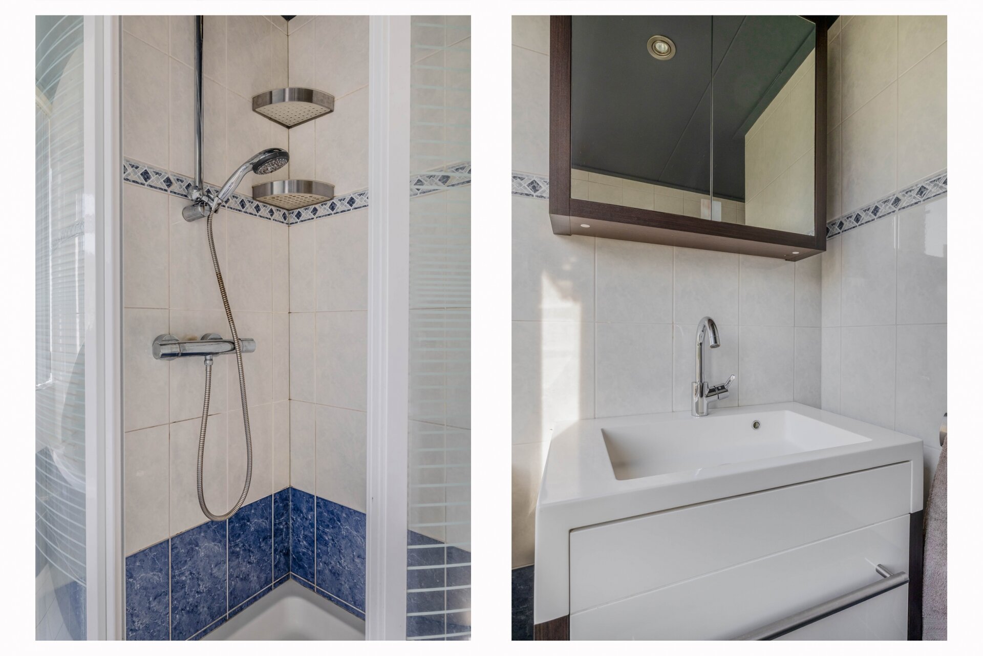 Op de bovenverdieping vind je twee slaapkamers, allebei voorzien van een dakkapel die zorgt voor extra ruimte, licht en stahoogte. De grootste slaapkamer ligt aan de achterzijde en biedt vrij uitzicht richting het groen. Ook de tweede slaapkamer is verrassend praktisch ingedeeld en kan dienen als werkplek, logeerkamer of kinderkamer. De badkamer bevindt zich ook op deze verdieping is netjes en functioneel ingericht.