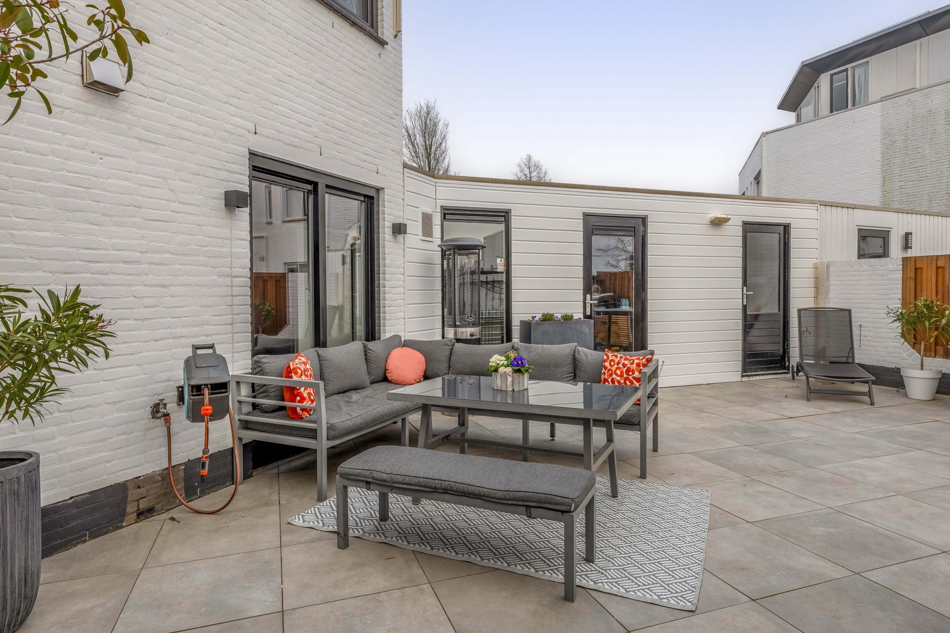Middels openslaande deuren vanuit de woonkamer is de tuin toegankelijk. Door de speelse indeling is er altijd wel een plek in de zon of schaduw te vinden. De onderhoudsvriendelijke tuin is recent opnieuw aangelegd. Ook de gevel is aangepakt en gereinigd. Verder beschikt de tuin over een buiten kraan en een aangebouwde stenen berging. Ideaal voor het opbergen van de fietsen en tuinkussens. Vanaf de tuin is tevens de dubbele oprit toegankelijk.