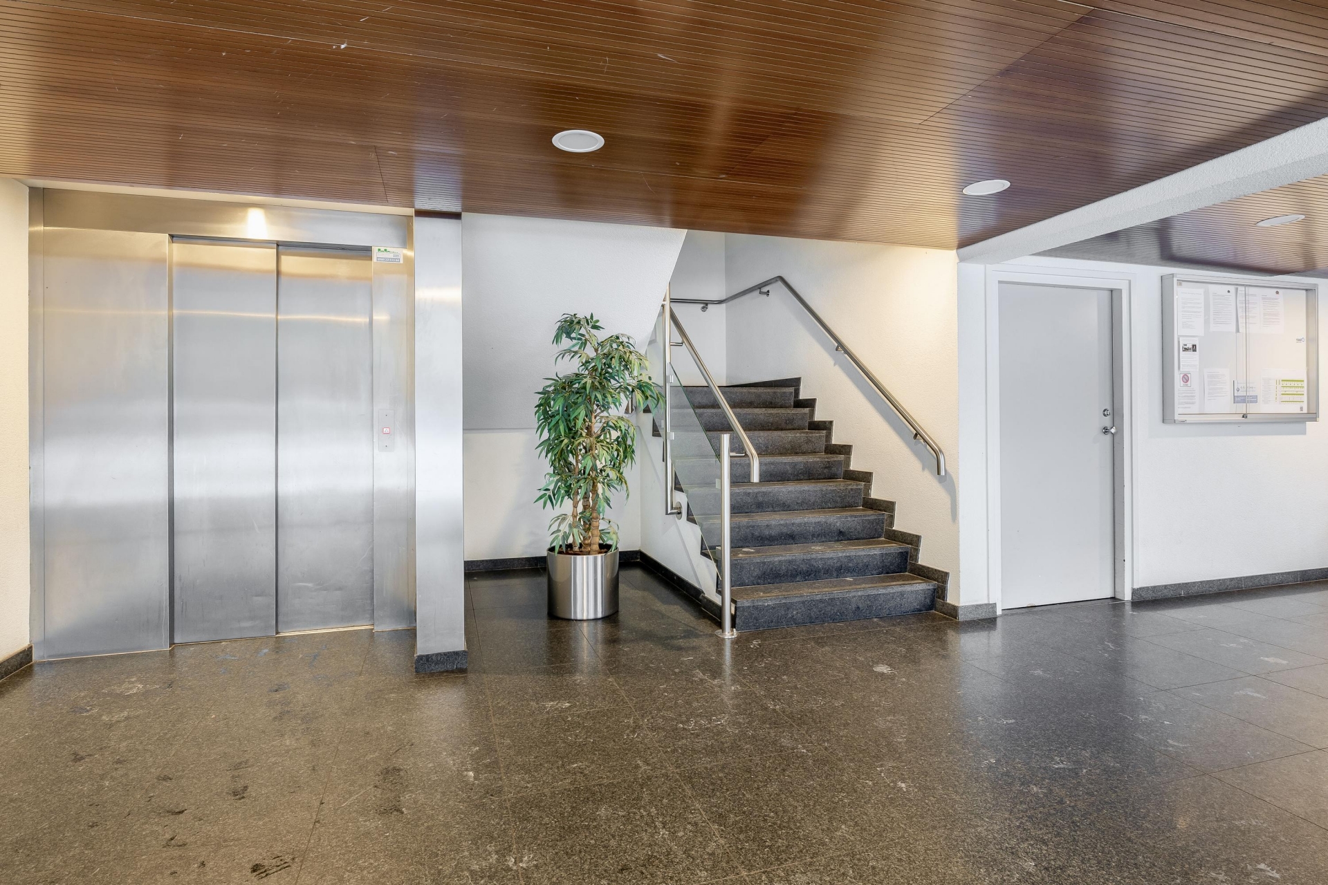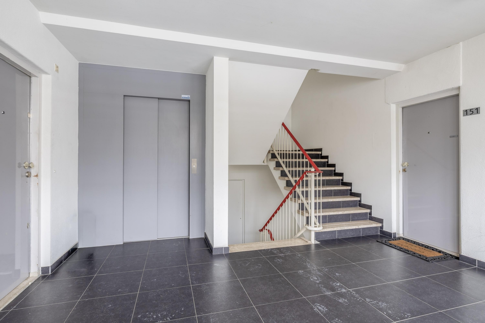 Afgesloten entree met bellentableau en brievenbussen. Vanuit de entree is er toegang tot de lift, het trappenhuis alsmede tot de bergingen in de onderbouw.