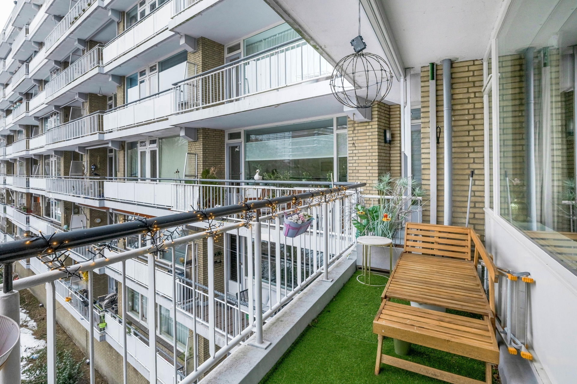 - Zonnig balkon over de gehele breedte van de woning;