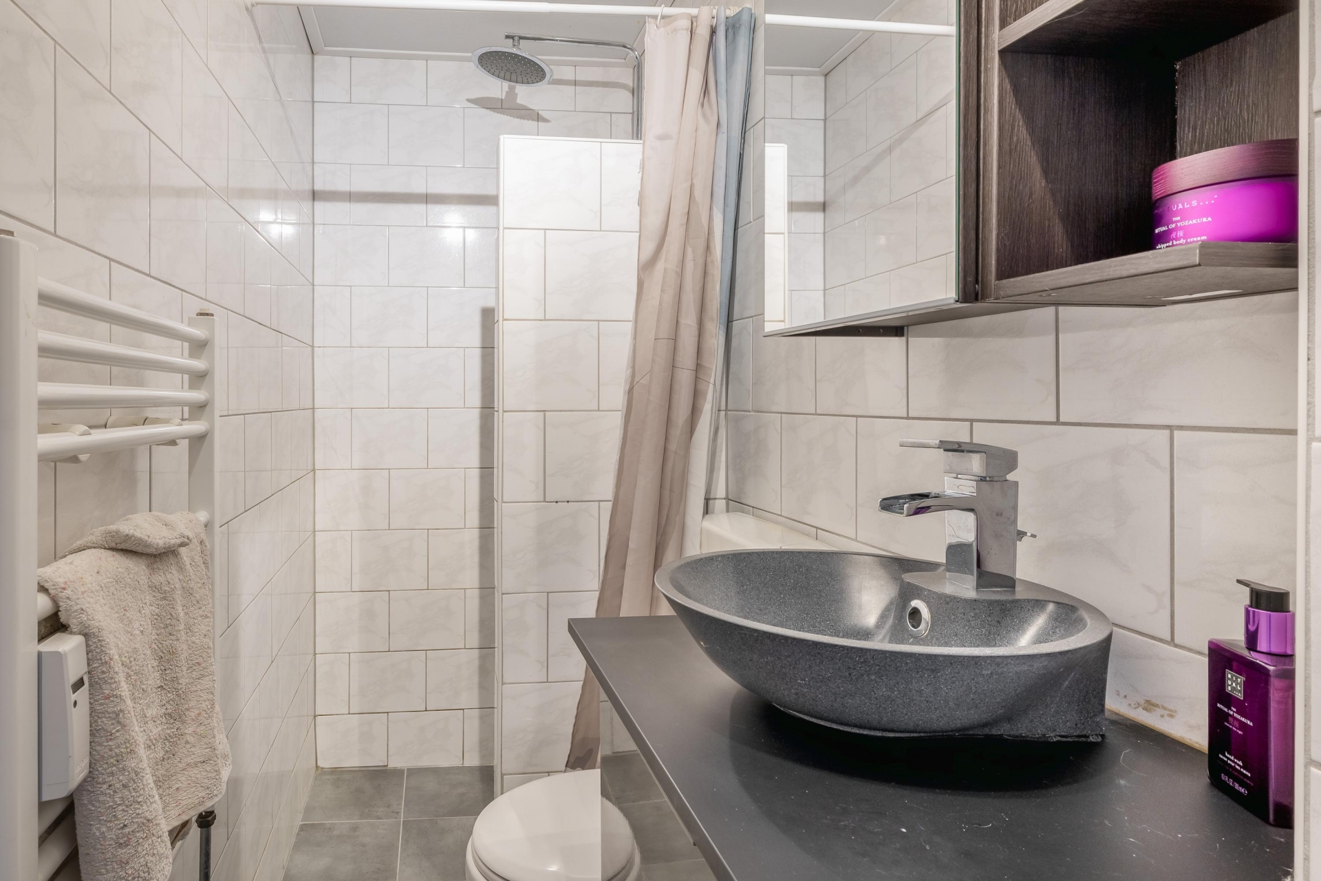 Met de lift bereikt u de 3e verdieping. Binnen is er een lichte woonkamer te vinden met een open keuken. De keuken is voorzien van diverse inbouwapparatuur. Het balkon is gelegen aan de achterzijde en is zonnige gesitueerd, namelijk het zuidwesten. Liever een plek in de schaduw? Dat kan middels het elektrische zonnescherm. Aan de voorzijde van het complex is de slaapkamer te vinden met een vaste kast. Centraal is de badkamer te vinden, deze beschikt over een douche, toilet en een wastafel.