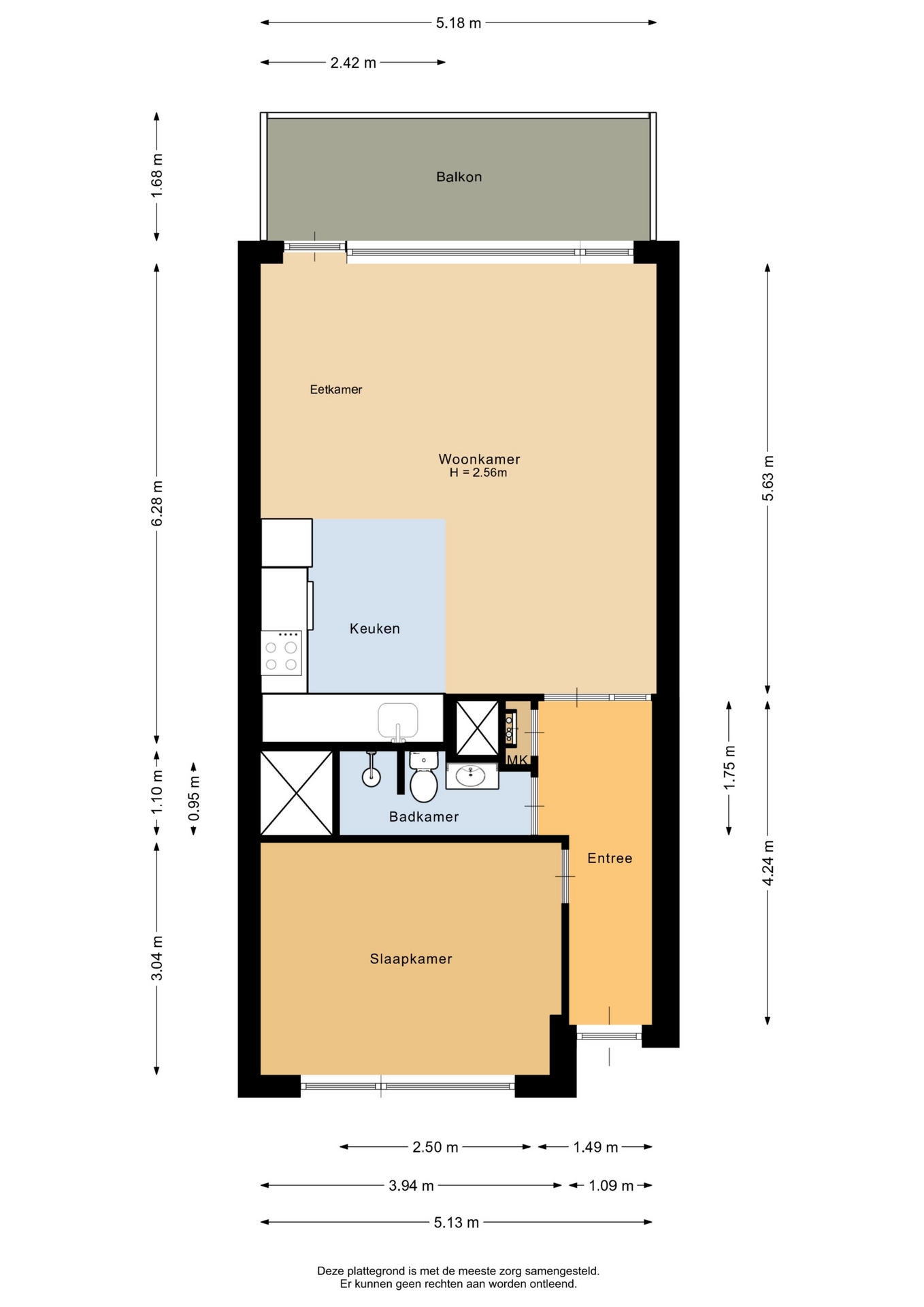 “Deze informatie is door ons met de nodige zorgvuldigheid samengesteld. Onzerzijds wordt echter geen enkele aansprakelijkheid aanvaard voor enige onvolledigheid, onjuistheid of anderszins, dan wel de gevolgen daarvan. Alle opgegeven maten en oppervlakten zijn indicatief.”