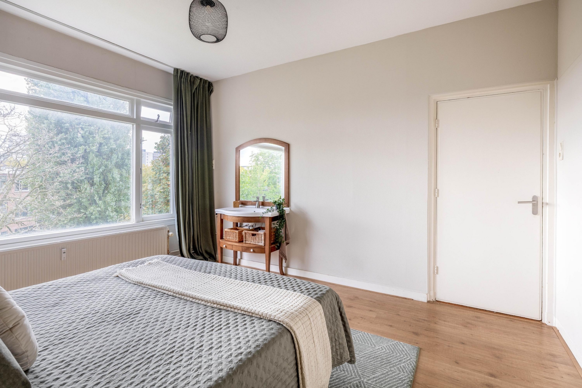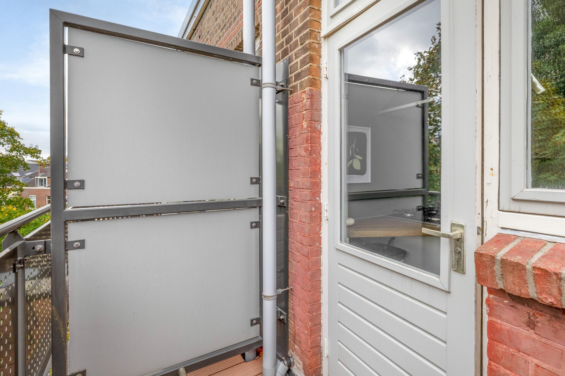 Aan de achterzijde bevindt zich een zonnig balkon op het zuiden. Een heerlijk verlengstuk van de woonkamer waar je kunt ontspannen met een kop koffie in de ochtend of een goed glas wijn in de avondzon. Dankzij de ligging op de bovenverdieping geniet je hier van veel privacy en een fijn uitzicht over de stadstuinen.