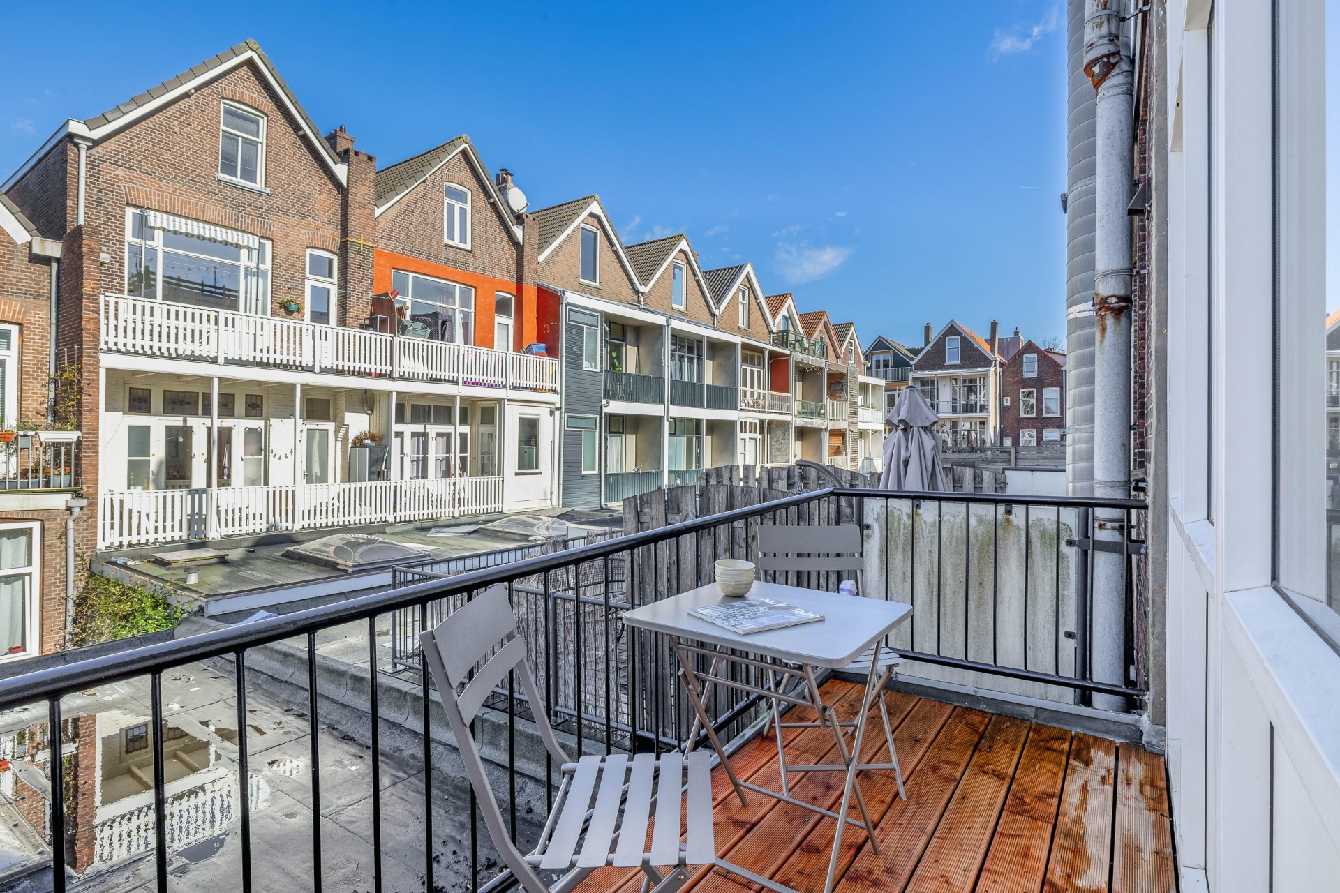 Het balkon aan de achterzijde biedt een prettige buitenruimte in stedelijke omgeving.