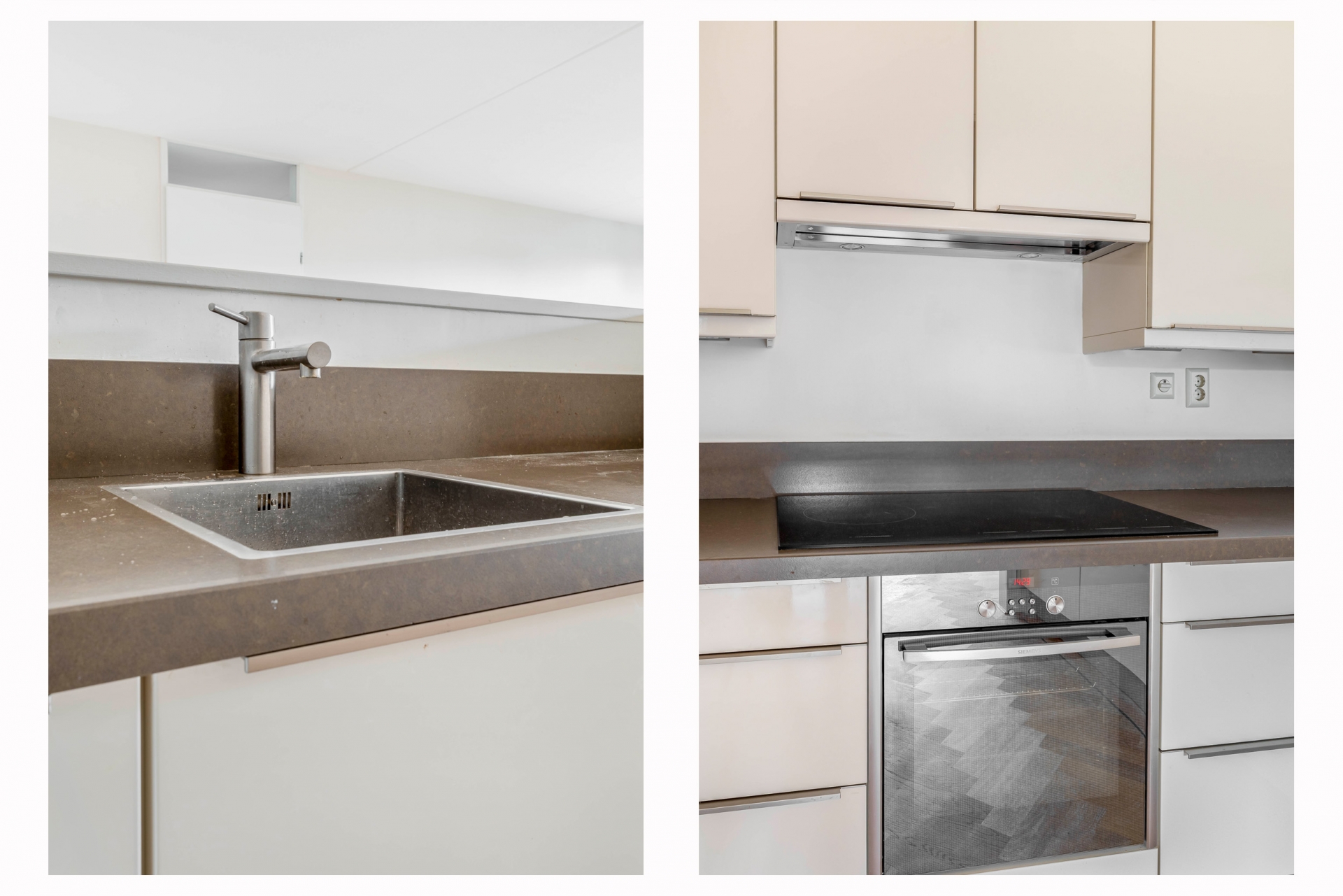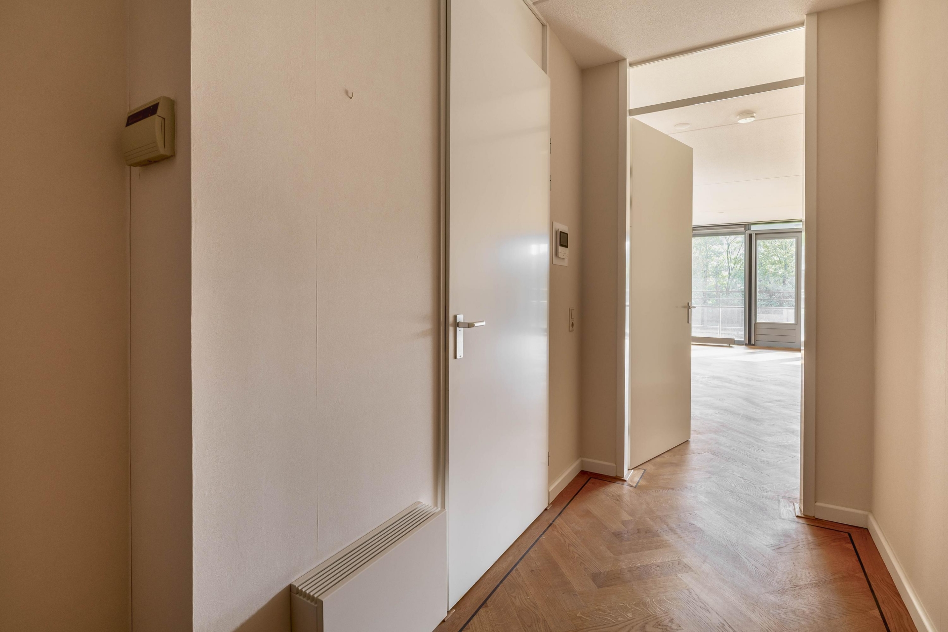 Bij binnenkomst van het appartement treft u een ruime hal welke toegang biedt tot het toilet en de technische ruimte, waar zich de opstelling voor wasmachine, droger en cv-ketel (2016) bevindt. Aan het einde van de hal komt u uit in de ruime woonkamer met moderne open keuken. De keuken beschikt over alle benodigde inbouwapparatuur. De woonkamer heeft een fraaie houten visgraatvloer en is voorzien van veel raampartijen voor de nodige daglichttoetreding. Middels een dubbele openslaande deuren is er toegang tot het balkon, welke gesitueerd is op het zuiden. Gegarandeerd dat dit vrije uitzicht over het groen nooit zal vervelen. Middels een tussenportaal is er toegang tot 2 slaapkamers welke beide zijn voorzien van op maat gemaakte inbouwkasten en de badkamer. De complete badkamer beschikt over een ruime douche, toilet en dubbele wastafel met meubel. Hier komt u dus niets te kort!
