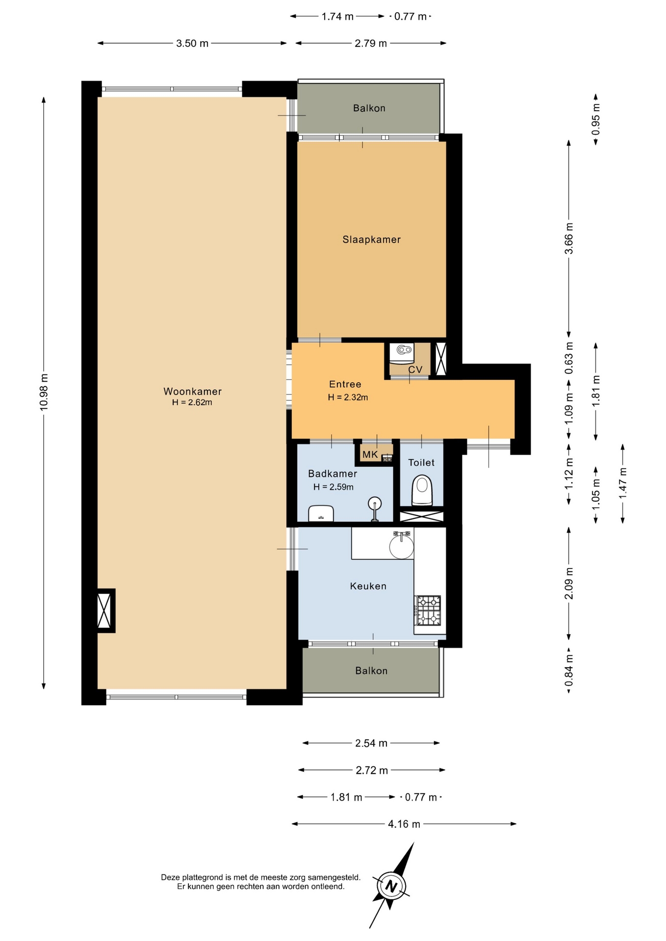 “Deze informatie is door ons met de nodige zorgvuldigheid samengesteld. Onzerzijds wordt echter geen enkele aansprakelijkheid aanvaard voor enige onvolledigheid, onjuistheid of anderszins, dan wel de gevolgen daarvan. Alle opgegeven maten en oppervlakten zijn indicatief.”
