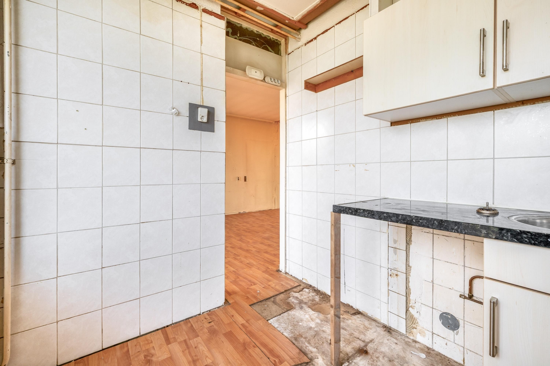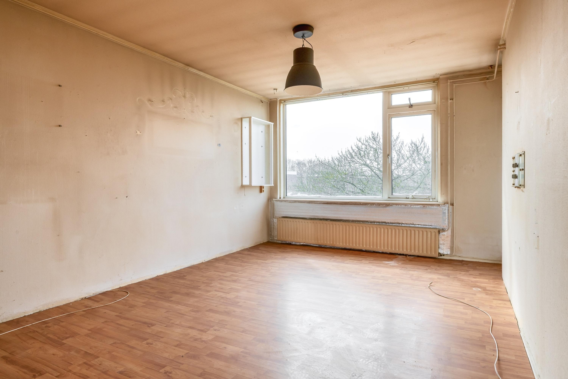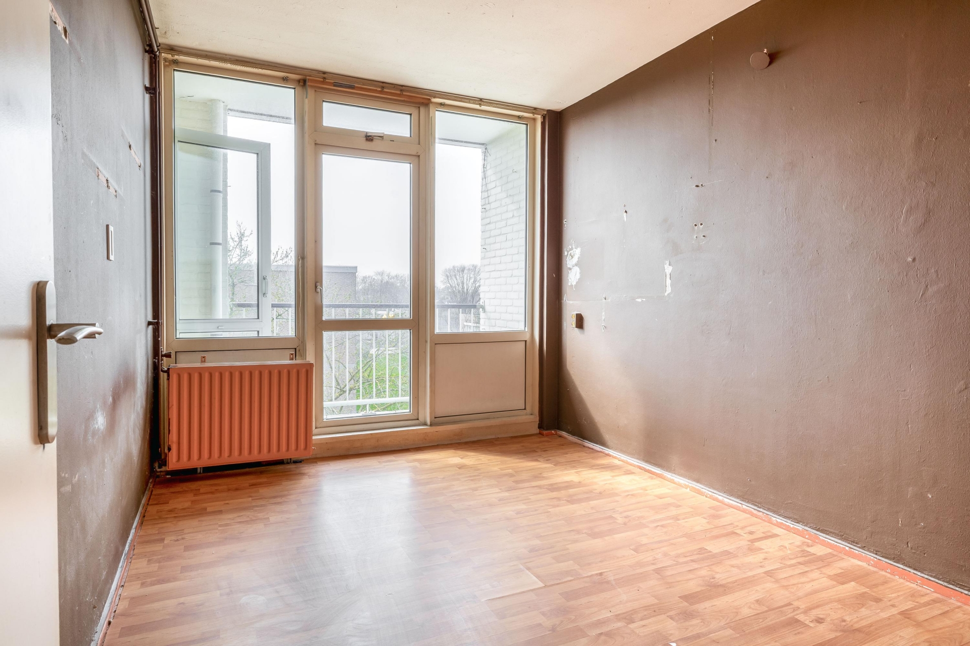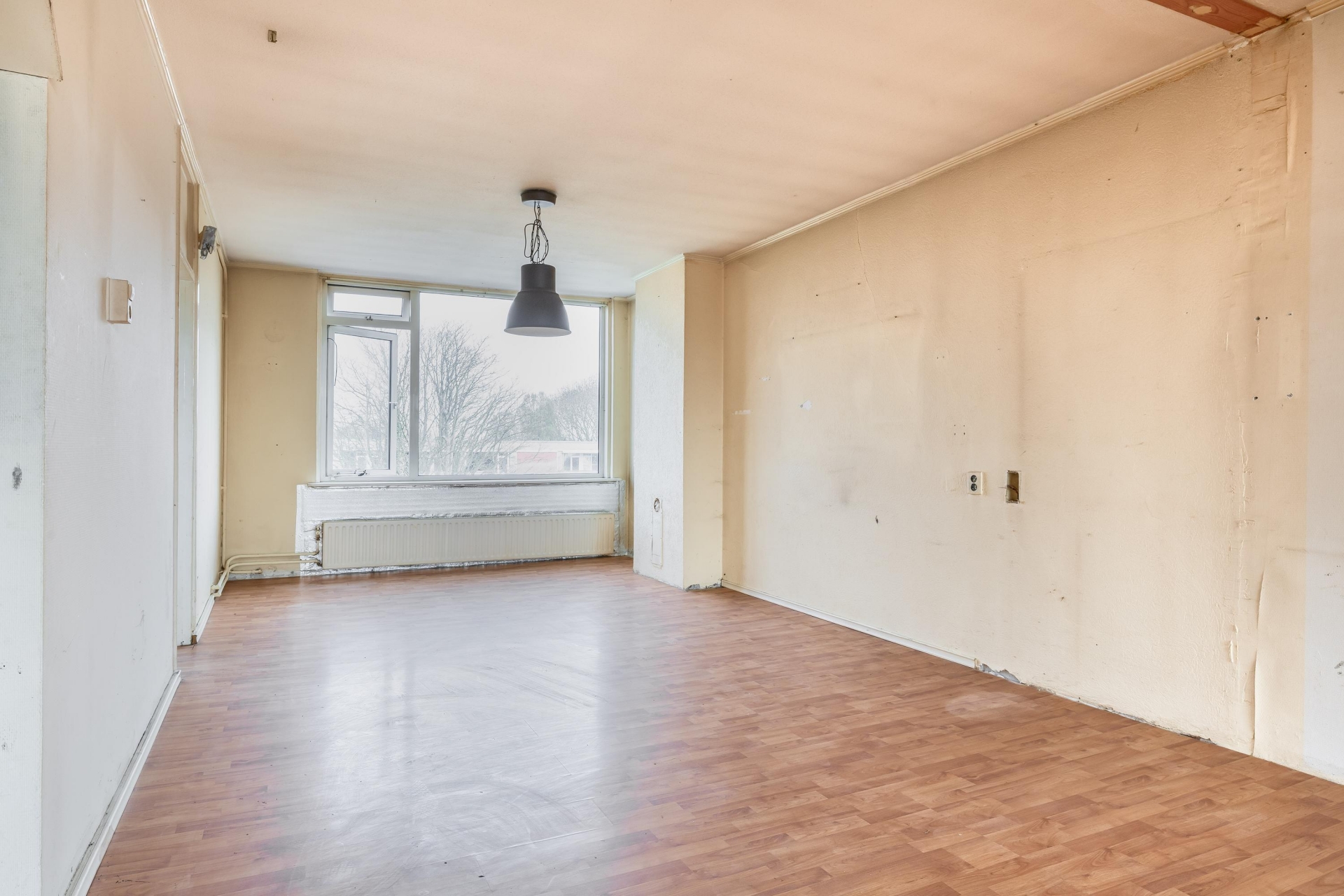 De woonkamer is verrassend ruim en vooral lekker licht dankzij de grote raampartijen. Dit is echt de plek waar je straks een fijne leefruimte van kunt maken. Of je nu kiest voor een strakke moderne inrichting of juist een warme, sfeervolle stijl: de ruimte biedt volop mogelijkheden. Wat extra interessant is, is dat de huidige indeling ruimte biedt voor aanpassing. Zo is het mogelijk om een extra kamer te creëren, waardoor het appartement geschikt wordt voor bijvoorbeeld een aparte werkplek of tweede slaapkamer. Dat maakt het huis niet alleen aantrekkelijk voor nu, maar ook toekomstbestendig. De huidige staat vraagt om modernisering, maar dat geeft je ook de vrijheid om het helemaal goed aan te pakken. Denk aan nieuwe wanden, vloeren en afwerking die aansluiten bij jouw wensen. Met de juiste investering maak je hier een comfortabele en eigentijdse leefruimte van.