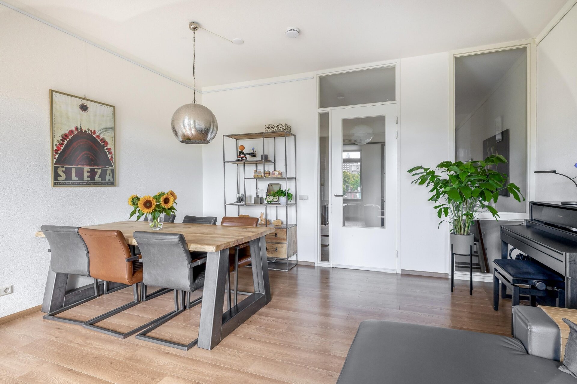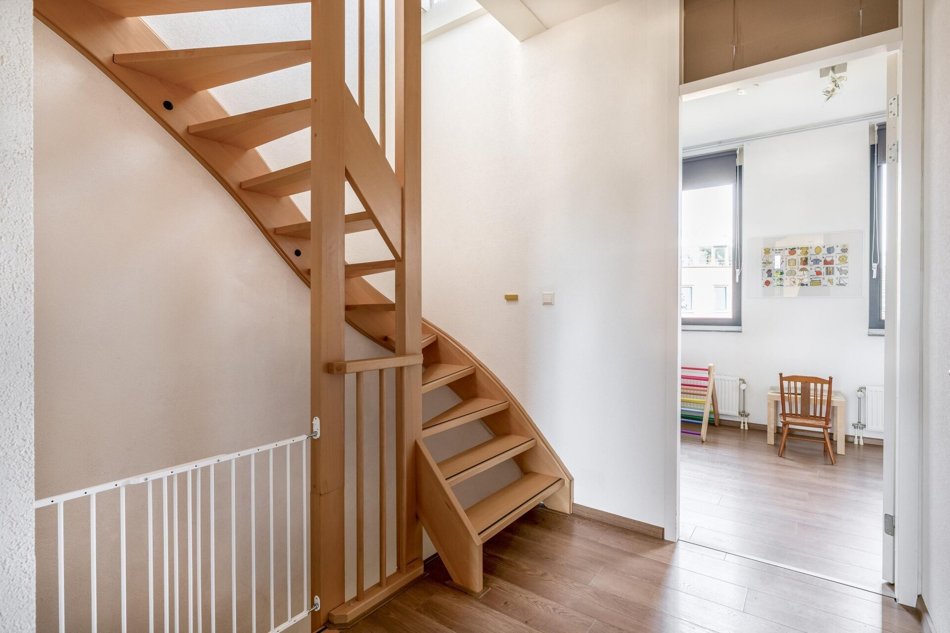 Dit appartement voelt als een volwaardig huis, verdeeld over drie lagen. Op de begane grond vind je een fijne entree met ruimte voor garderobe, waarna je via de trap de woonverdieping bereikt. De woonkamer is ruim en licht, met grote raampartijen en een prachtig zicht op het water.