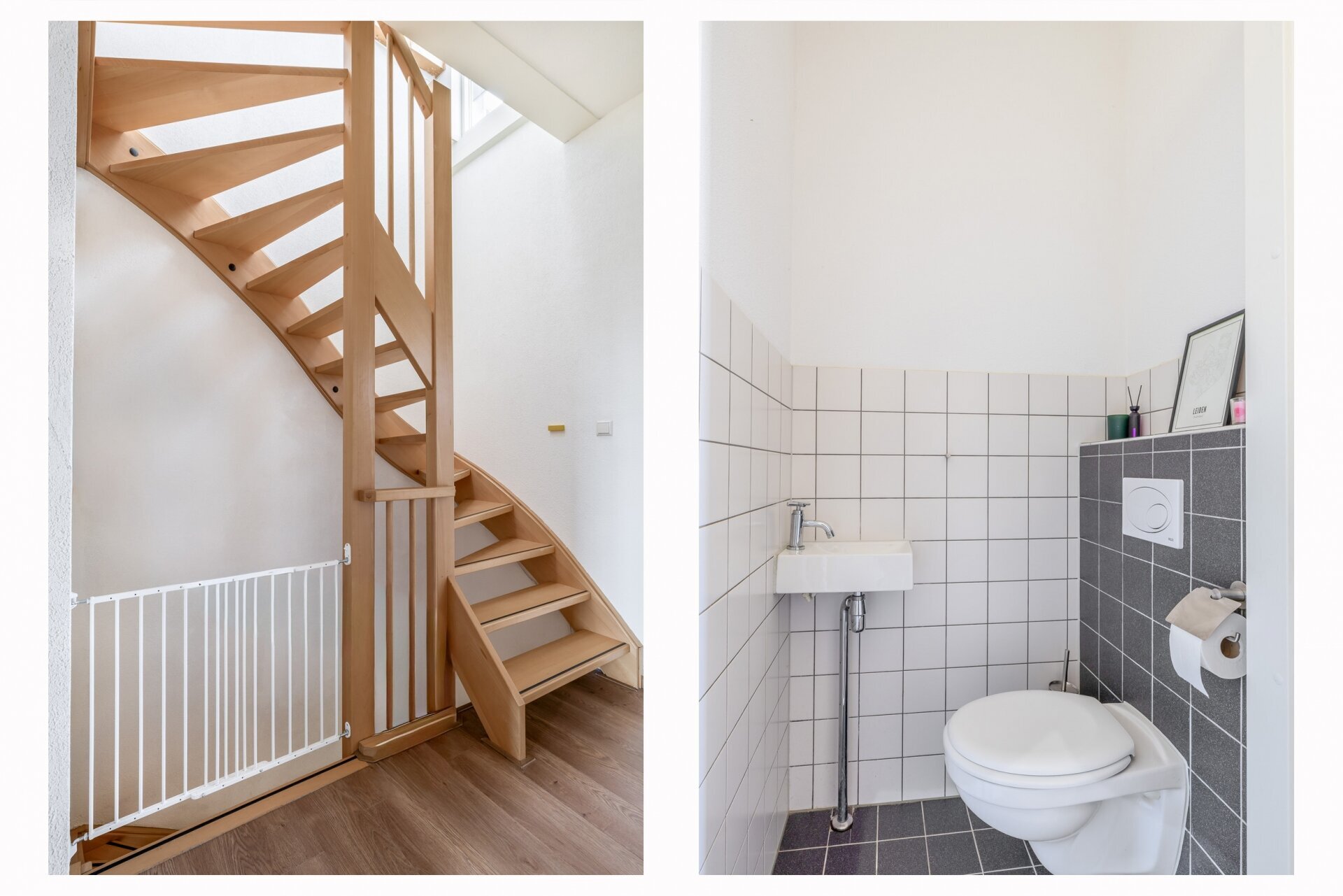 De badkamer op de eerste verdieping is keurig afgewerkt en voorzien van een inloopdouche, wastafelmeubel en ligbad. Een tweede separaat toilet is aanwezig. Op de zolderverdieping bevindt zich op de overloop voldoende ruimte voor wasmachine en droger en de opstelplaats van de CV-ketel.