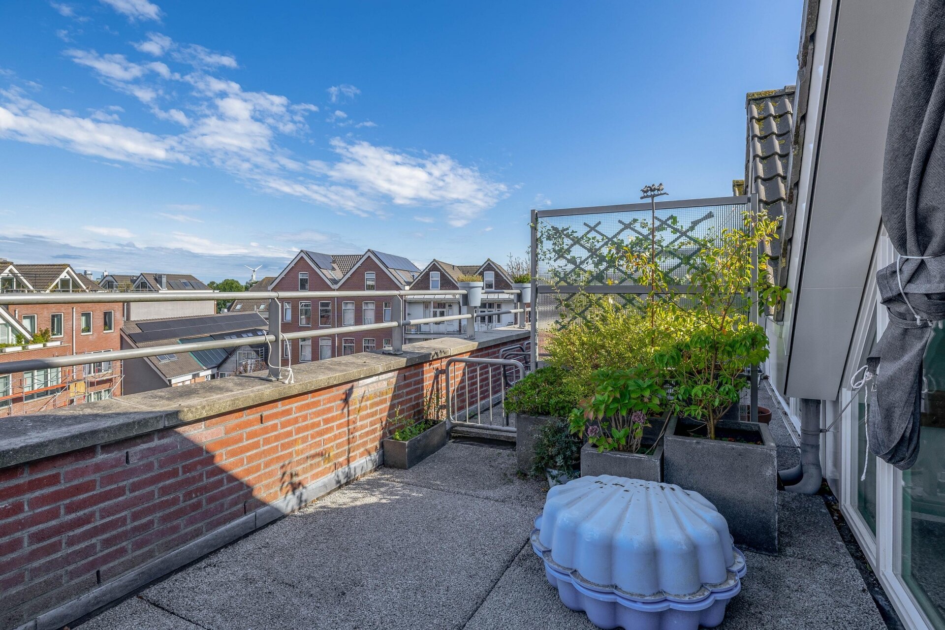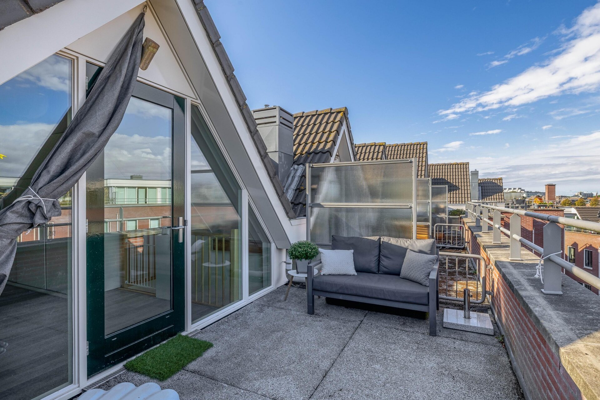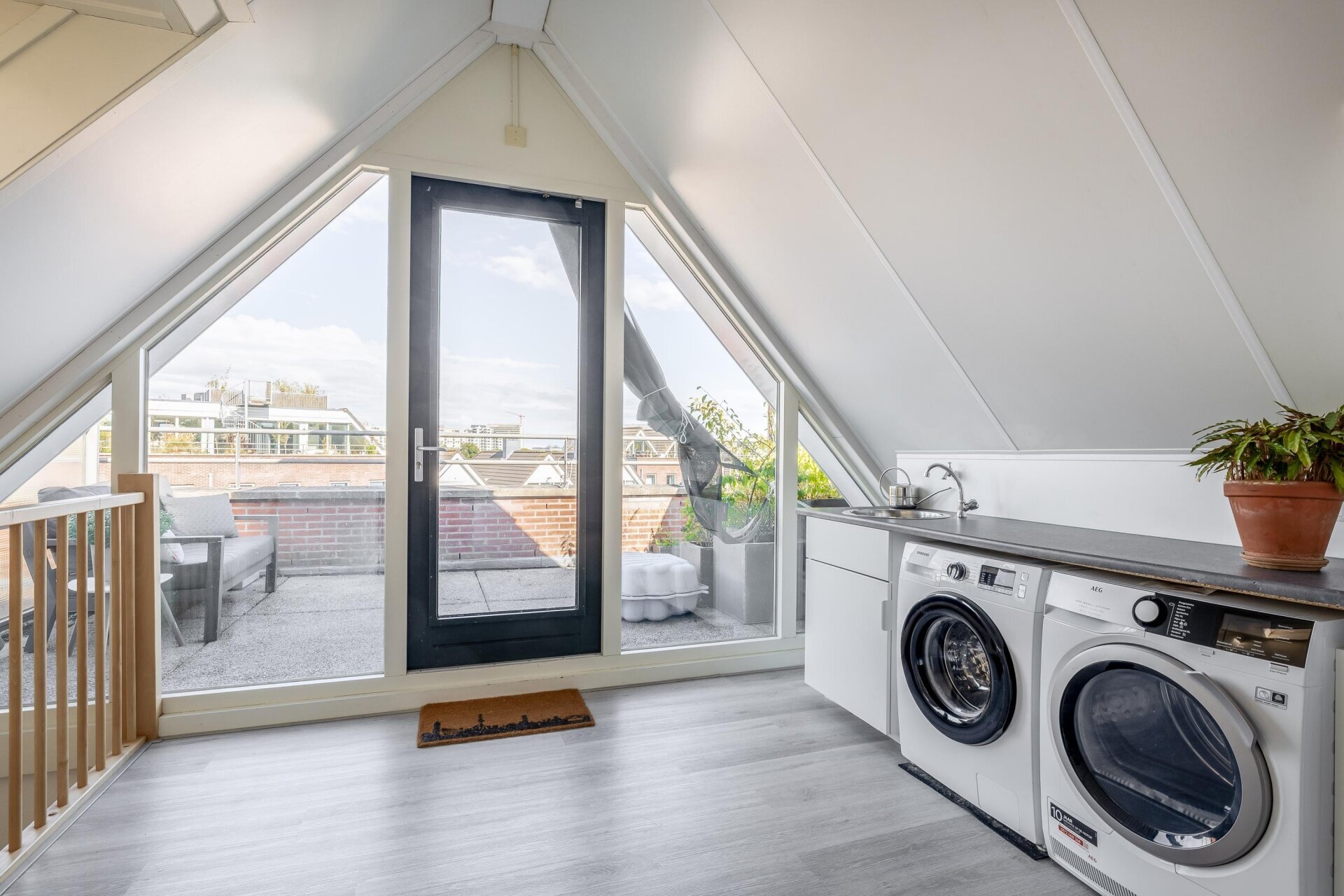 Wat dit huis extra bijzonder maakt is het ruime dakterras op het oosten. Begin je dag met een kop koffie in de ochtendzon, kijkend op de binnentuinen van de wijk. Ondanks de ligging op het oosten, krijg je voldoende zon in de middag, omdat het puntdak de zon niet in de weg staat. Hier kun je heerlijk in alle rust genieten gedurende de lente-/zomermaanden.