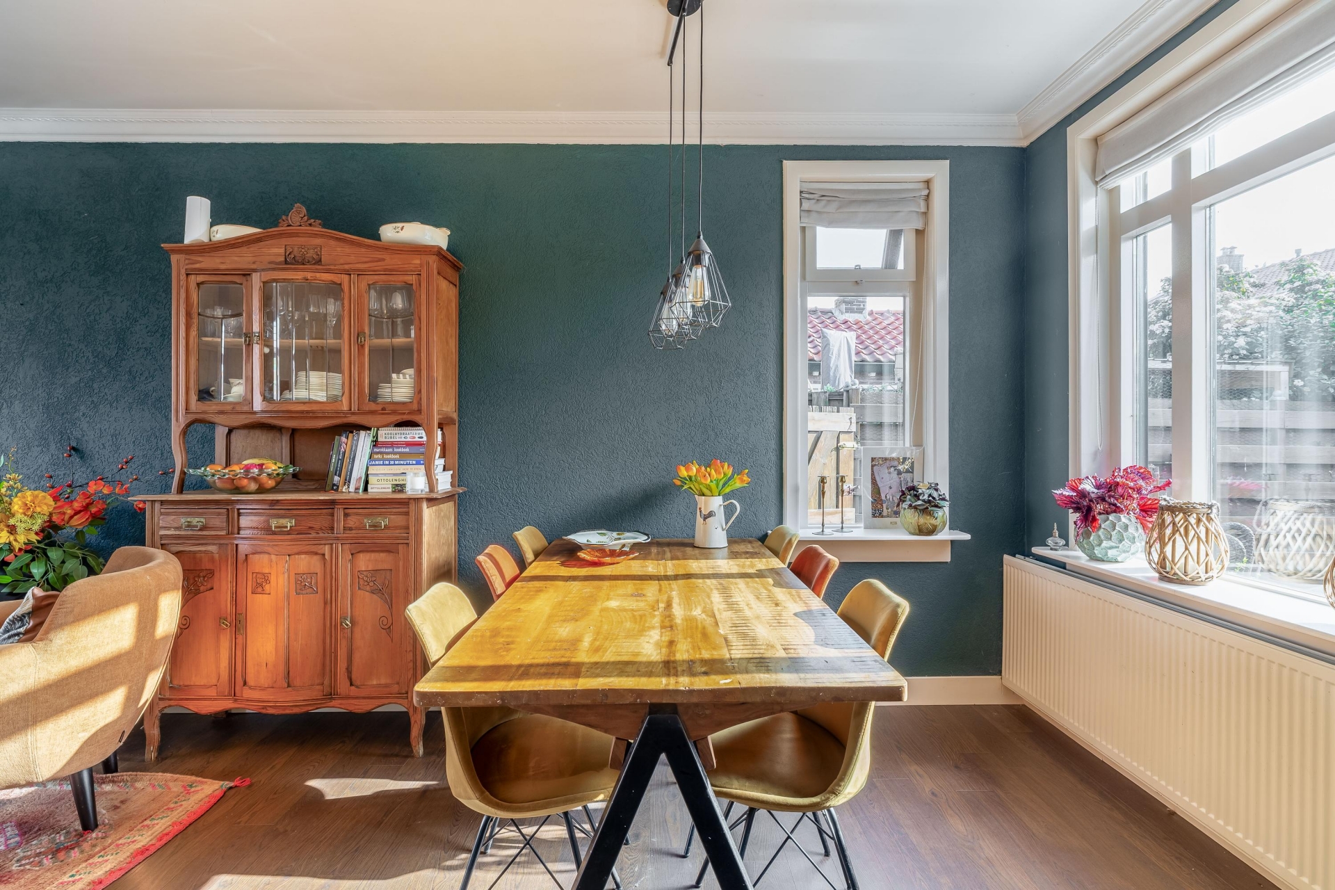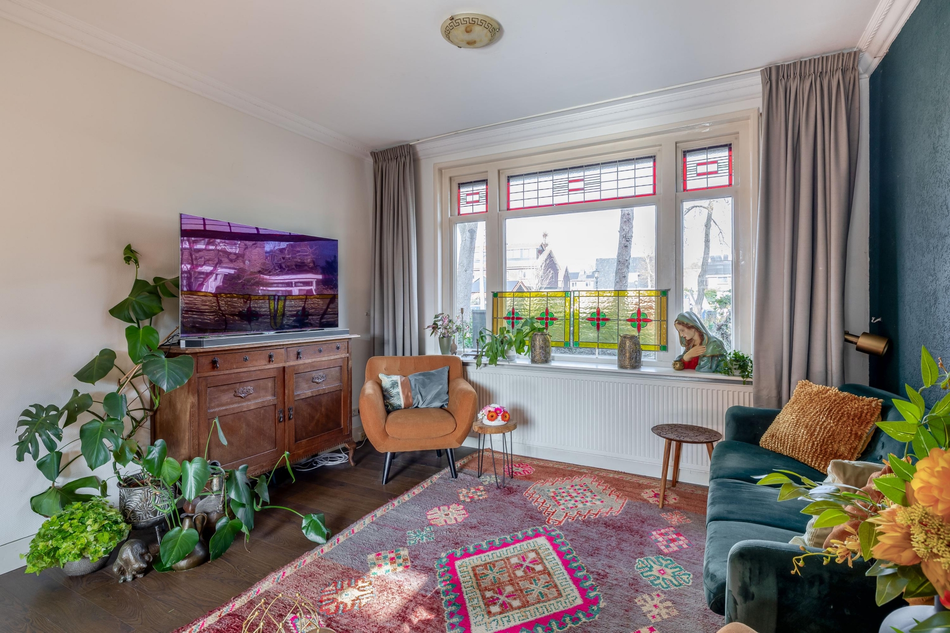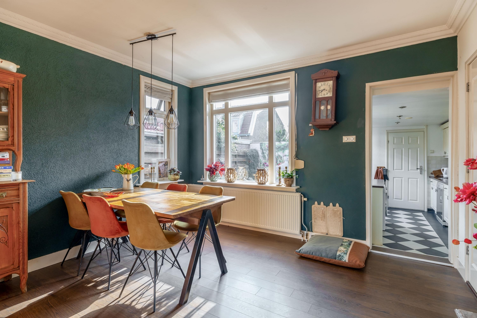 De voorzijde heeft een karakteristieke uitstraling die goed past bij de bouwperiode van de jaren ’30. Binnen merk je meteen dat dit huis met zorg is onderhouden en dat de ruimtes prettig op elkaar aansluiten. Dankzij de doorzonkamer en het extra zijraam valt het daglicht rijkelijk naar binnen, waardoor de leefruimte het hele jaar door een lichte en fijne plek is om te wonen.