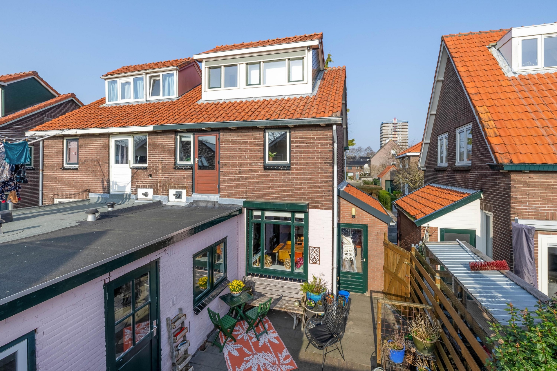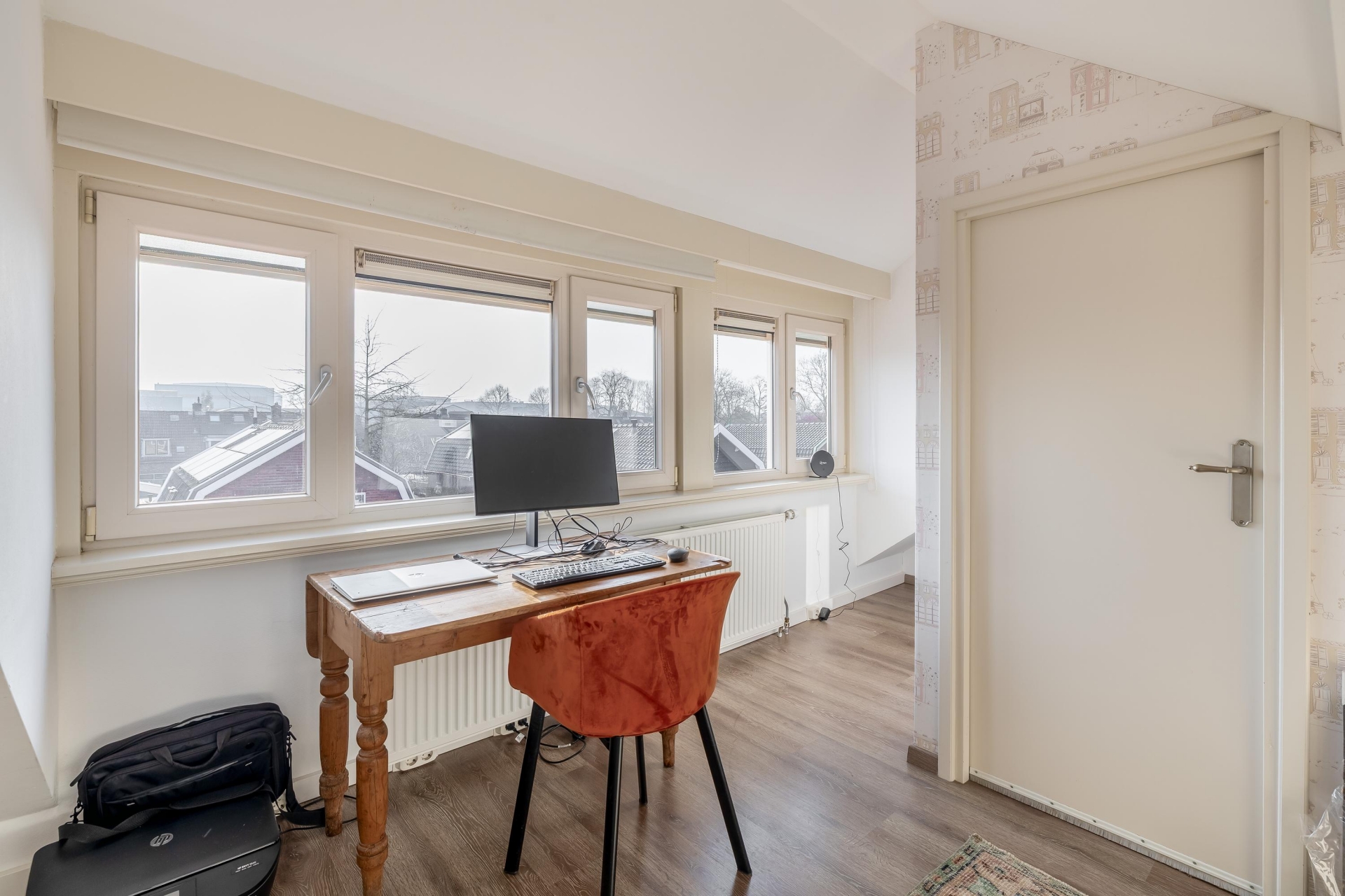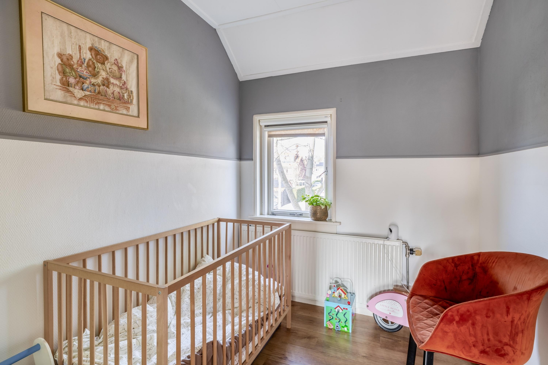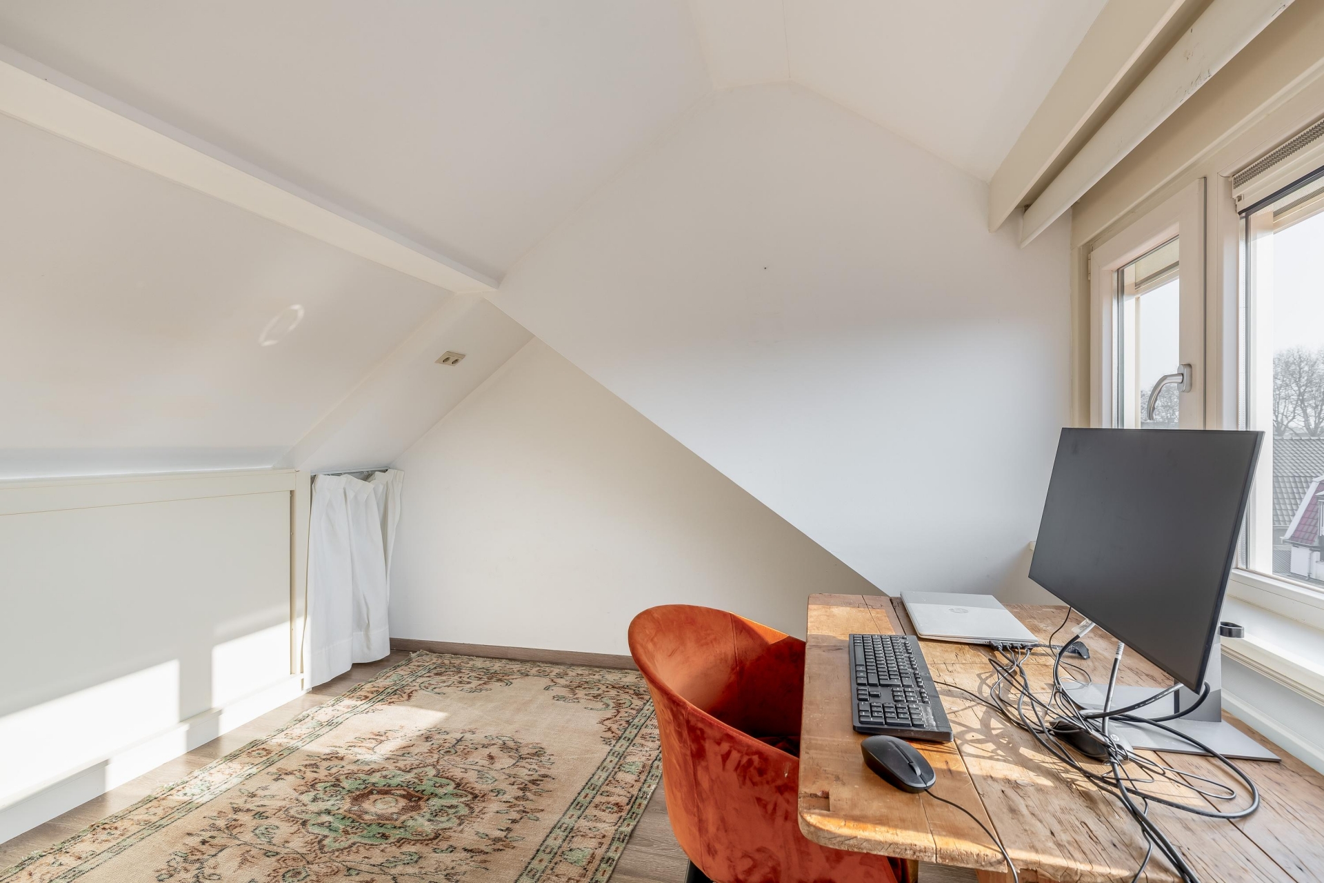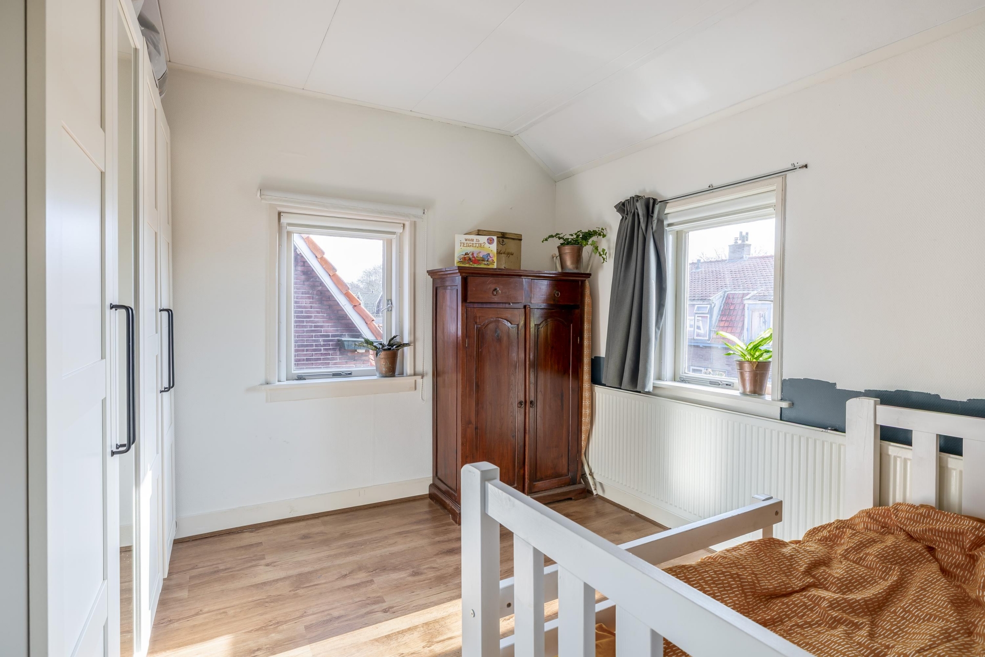 Op de eerste verdieping bevinden zich meerdere slaapkamers en de badkamer. De grootste slaapkamer ligt aan de voorzijde en is een comfortabele ruimte met voldoende plek voor een groot bed en een kledingkast. Aan de achterzijde ligt nog een fijne slaapkamer die ook goed gebruikt kan worden als werk- of hobbykamer. De tweede verdieping is een echte verrassing. Dankzij de dakopbouw is hier een volwaardige extra verdieping ontstaan. Hierdoor is de zolder niet alleen een bergzolder, maar een volwaardige kamer met veel licht en een leuk uitzicht over de wijk. Deze ruimte is perfect als extra slaapkamer, werkplek of hobbyruimte.