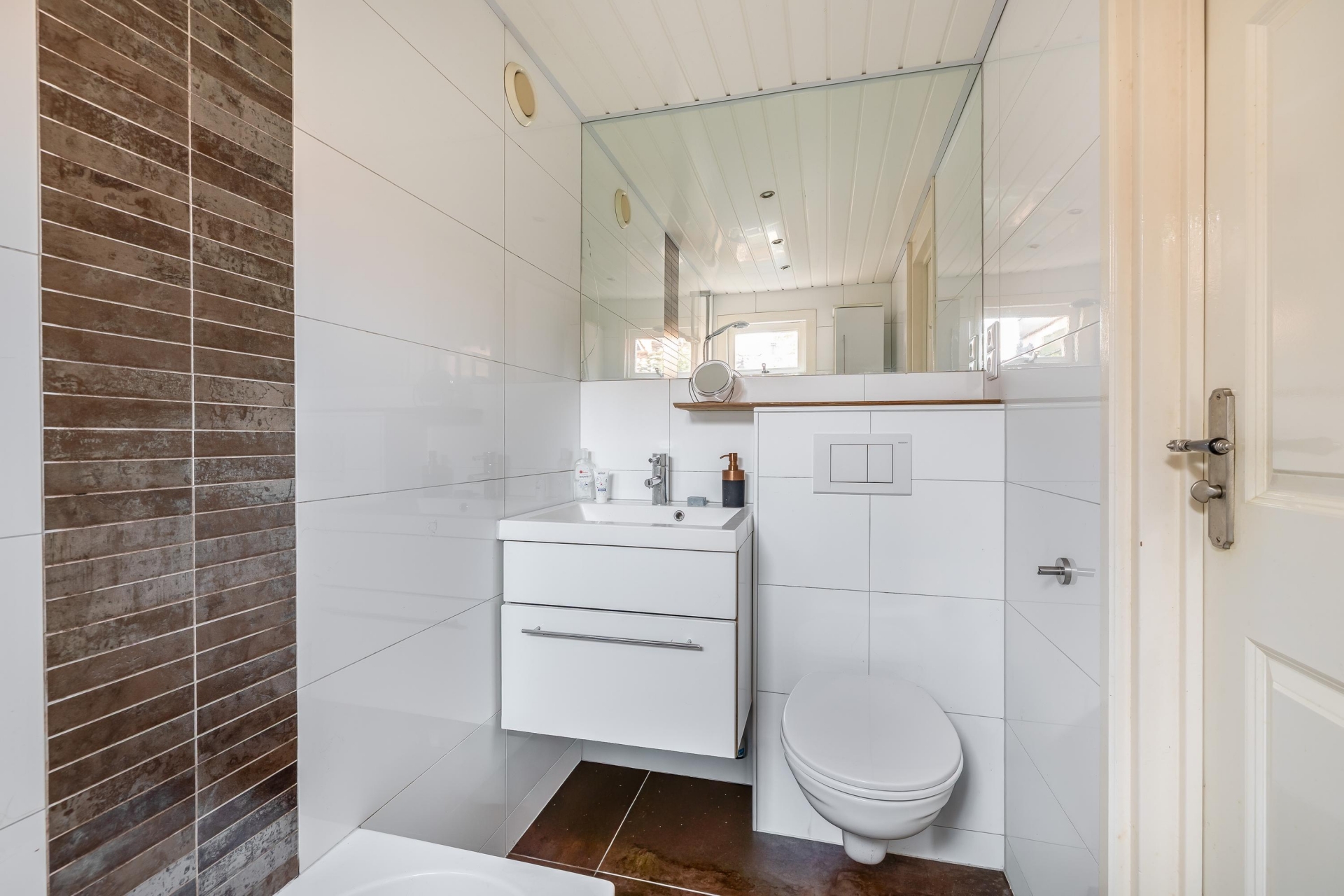 De badkamer op de begane grond is functioneel ingericht en voorzien van de benodigde voorzieningen voor dagelijks comfort.