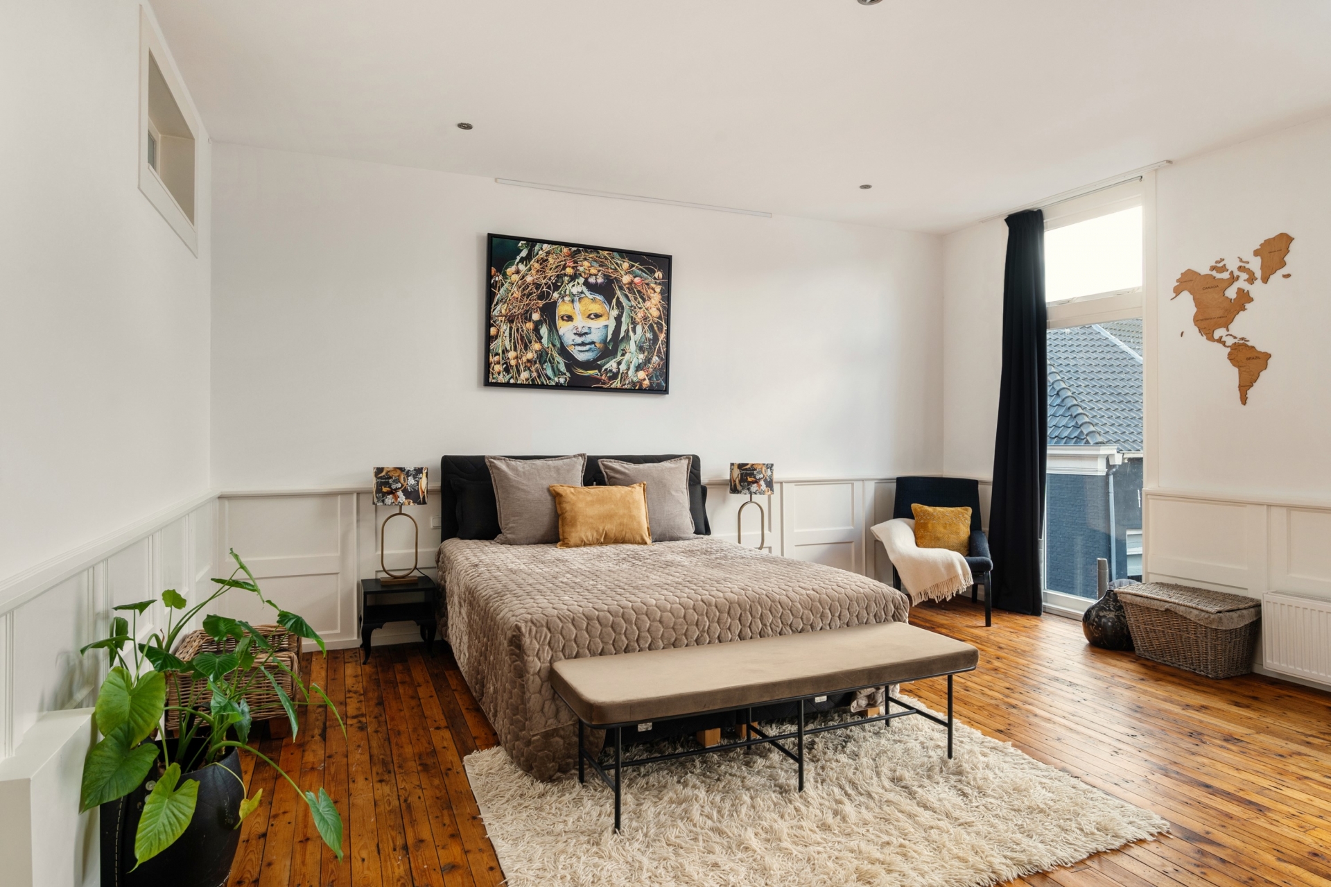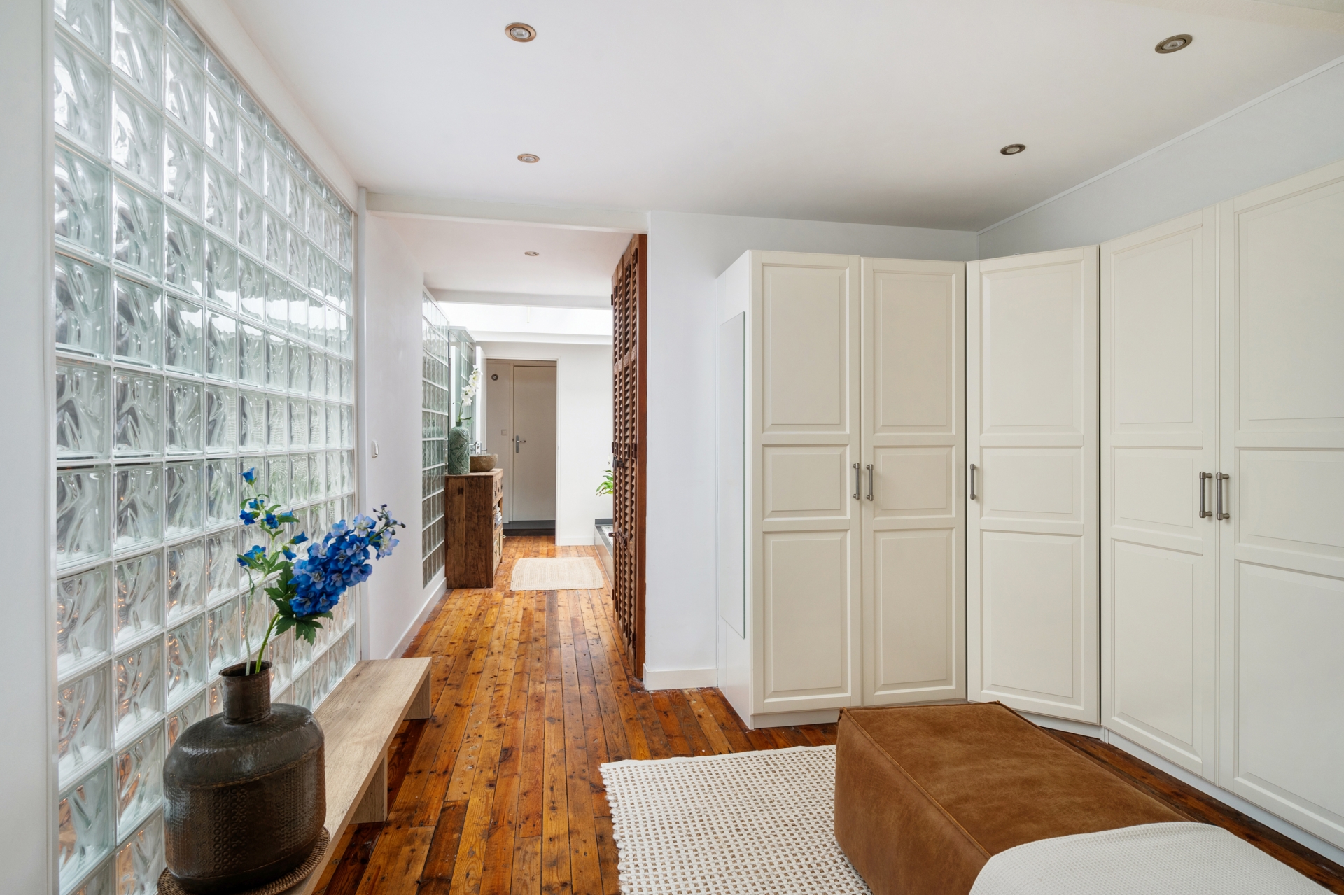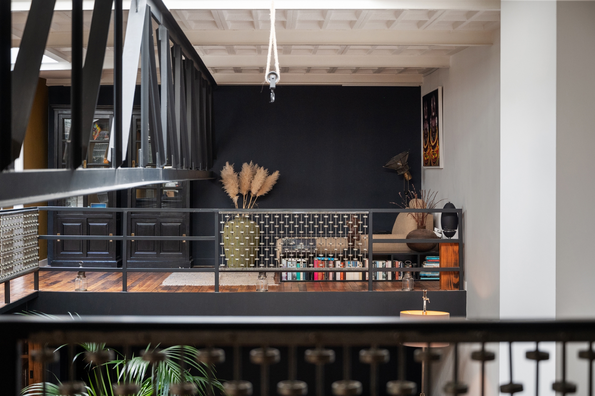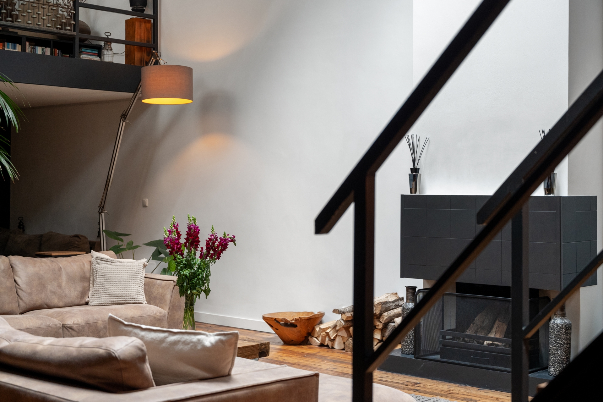 De vide en grote raampartijen zorgen voor een indrukwekkende ruimtelijkheid, terwijl zorgvuldig gekozen materialen en kleuren warmte en comfort brengen. De sfeer is stoer én verfijnd – een zeldzame combinatie die deze woning zijn eigen identiteit geeft.