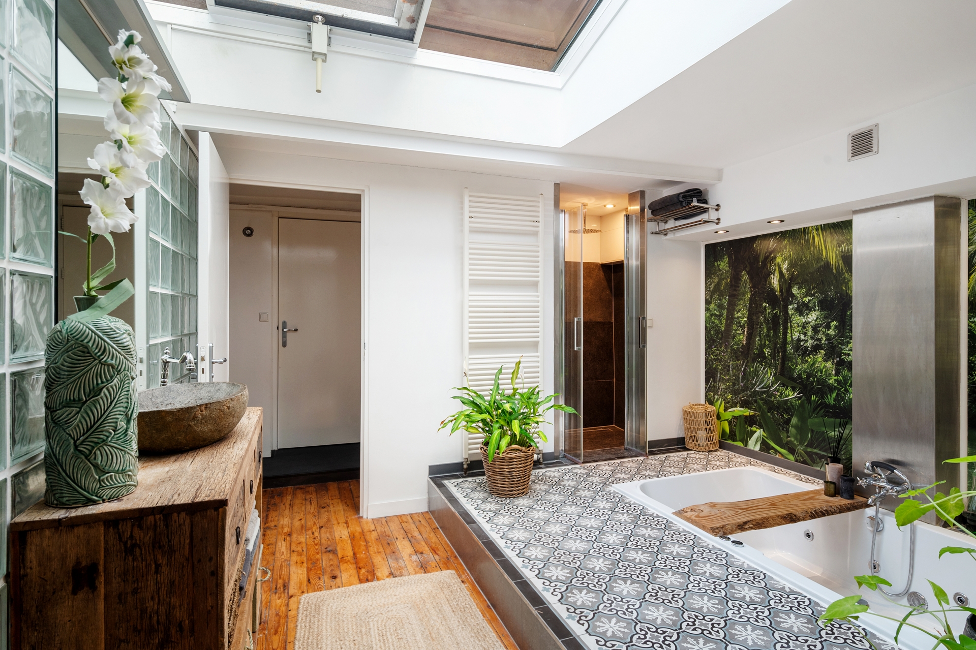 Het dakterras is zonder twijfel het kroonjuweel van deze woning. Met volledige privacy en zon van ’s ochtends vroeg tot zonsondergang, biedt deze buitenruimte een ongeëvenaarde ervaring. De voorzieningen maken het geheel compleet: een hottub, een buitenkeuken, een verwarmde buitendouche en weelderig groen creëren het gevoel van een resort midden in de stad. Een plek waar je tot rust komt, geniet en het leven viert.