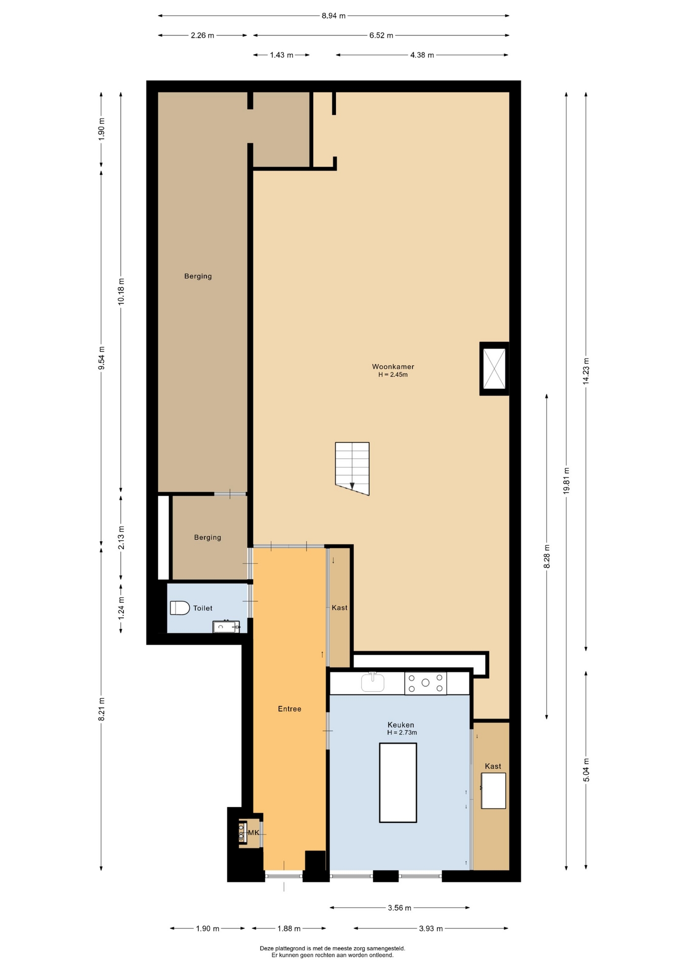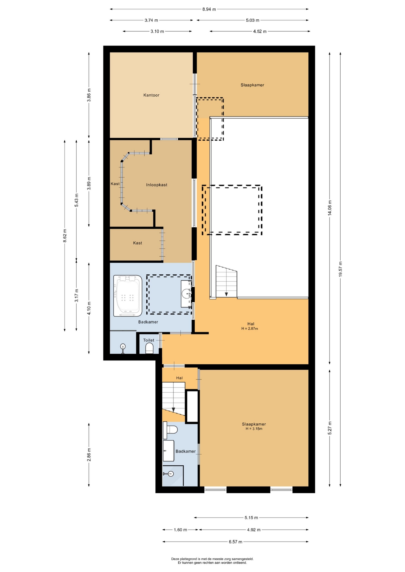 “Deze informatie is door ons met de nodige zorgvuldigheid samengesteld. Onzerzijds wordt echter geen enkele aansprakelijkheid aanvaard voor enige onvolledigheid, onjuistheid of anderszins, dan wel de gevolgen daarvan. Alle opgegeven maten en oppervlakten zijn indicatief.”