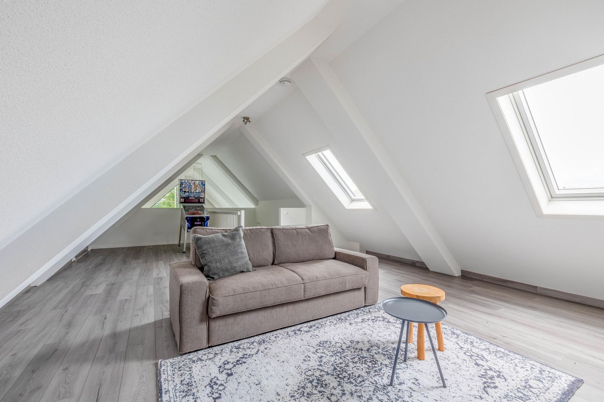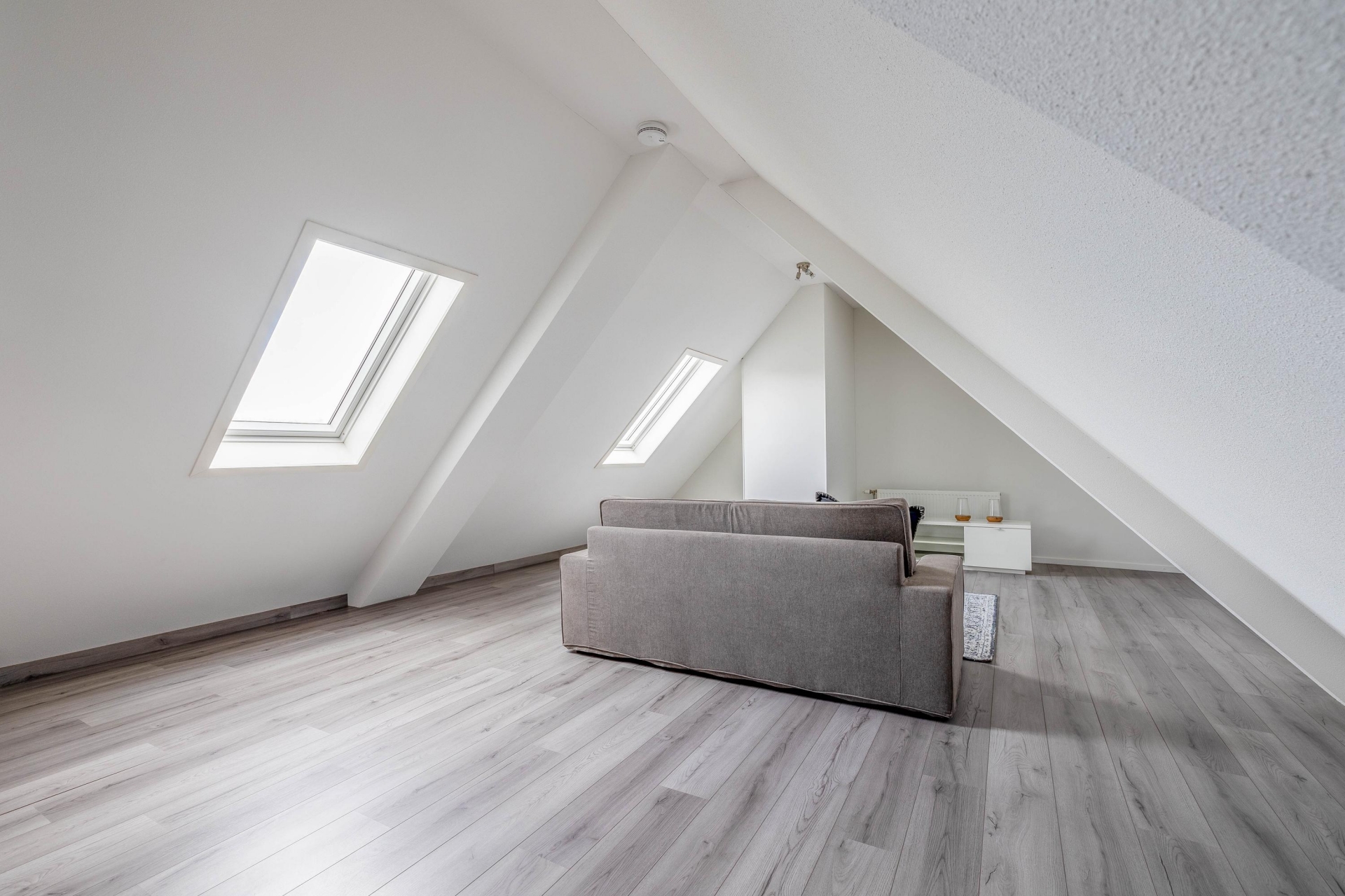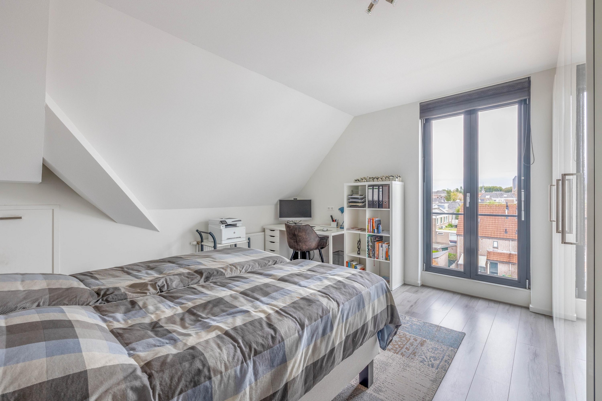 De entresol biedt extra leefruimte met een prachtig uitzicht over de stad dankzij de dakramen.