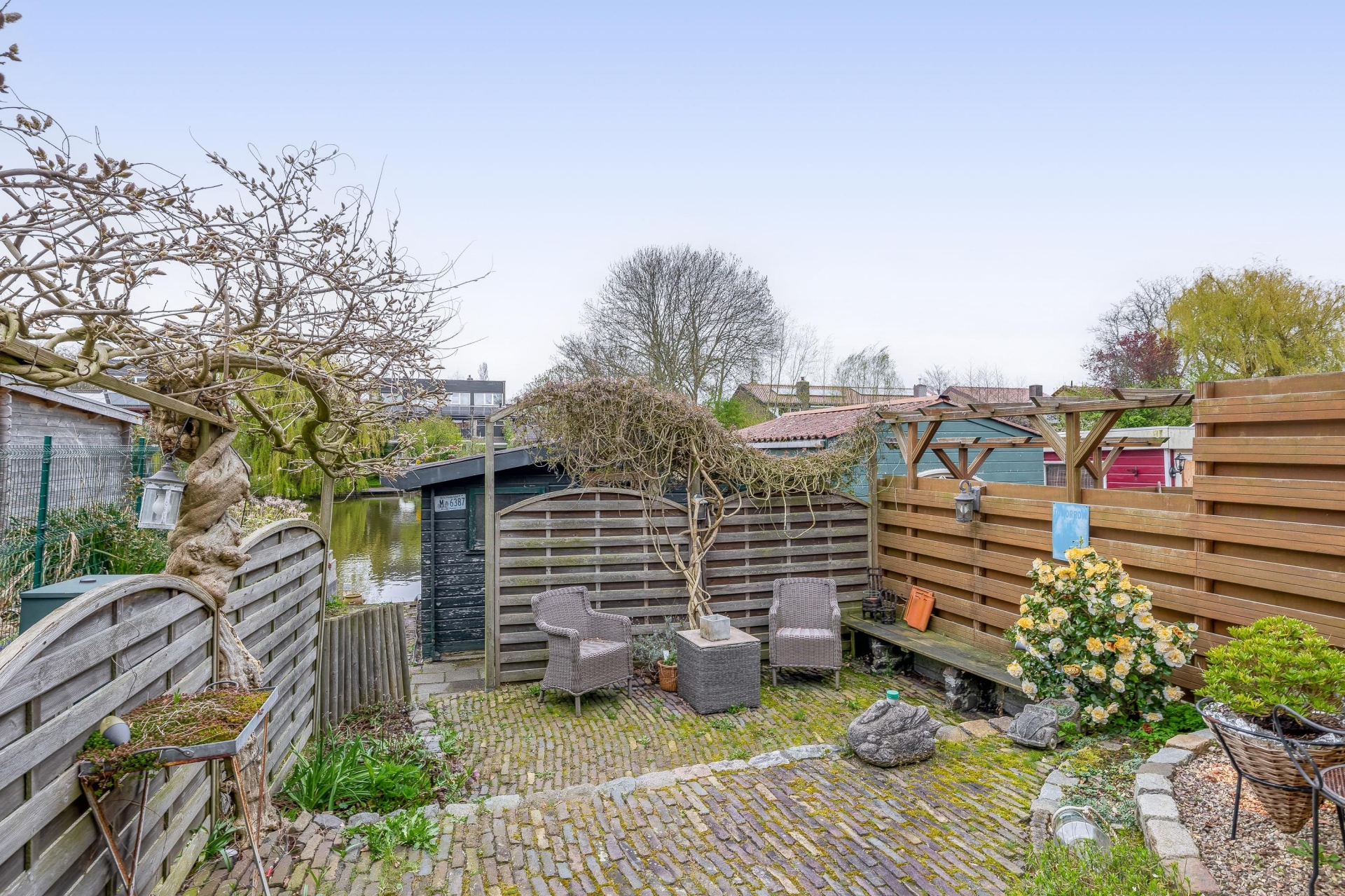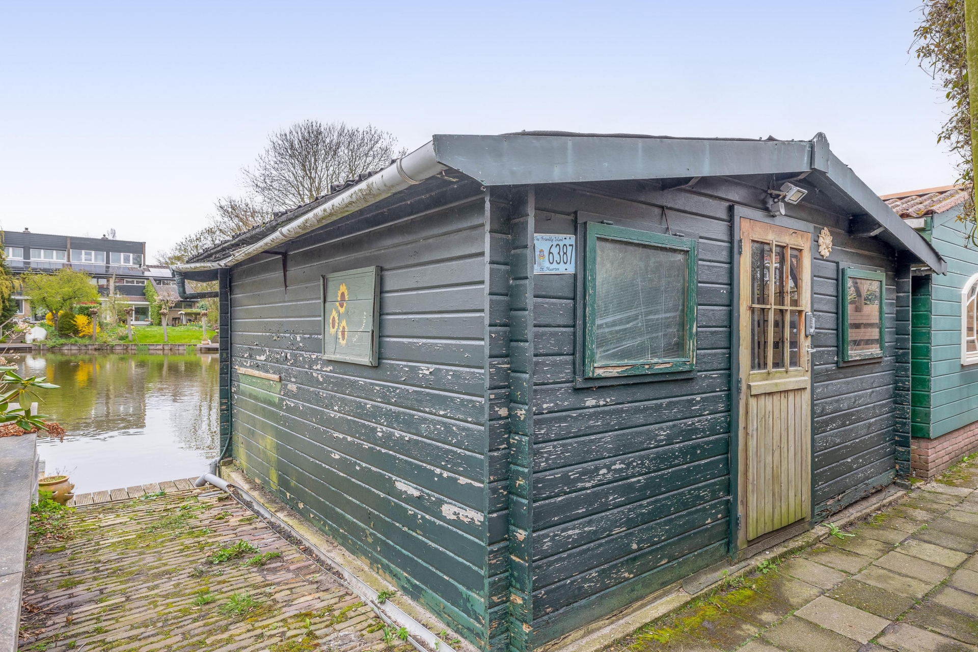 Entree woning; hal met meterkast; gezellige woonkamer met een open keuken in de uitbouw aan de achterzijde. De keuken is voorzien van diverse inbouwapparatuur. Via een 2e hal aan de achterzijde is de toiletruimte bereikbaar en de badkamer. De badkamer is uitgevoerd met een douche, wastafel en opstelplaats voor de wasmachine en droger. Via de hal is er toegang tot de achtertuin met een ruime houten berging en vlonder gelegen aan het water. De tuin is bereikbaar via een zij-ingang.