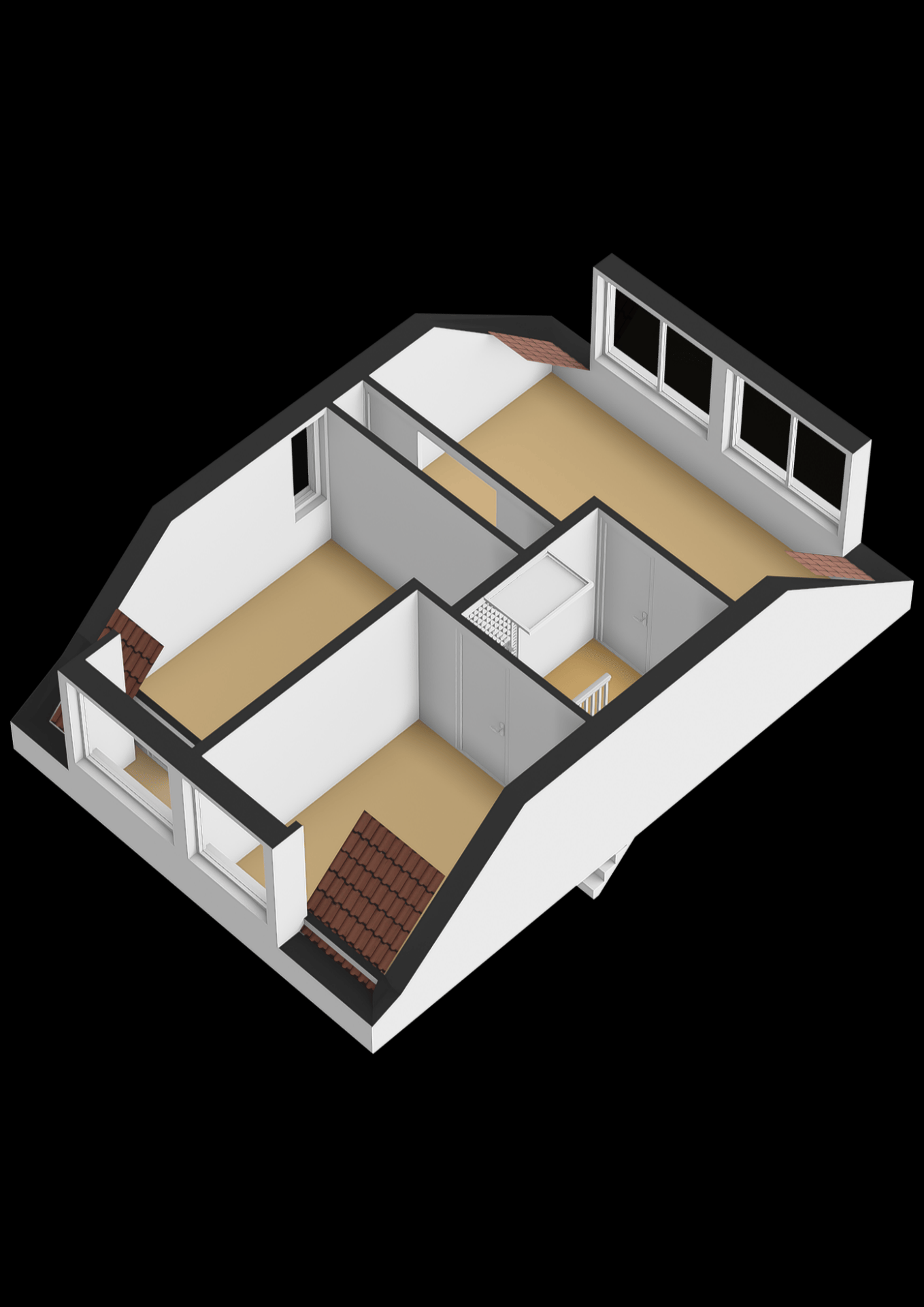 Overloop; slaapkamer 1 met kastenwand; 2e slaapkamer; berging; 3e slaapkamer en bergvliering.