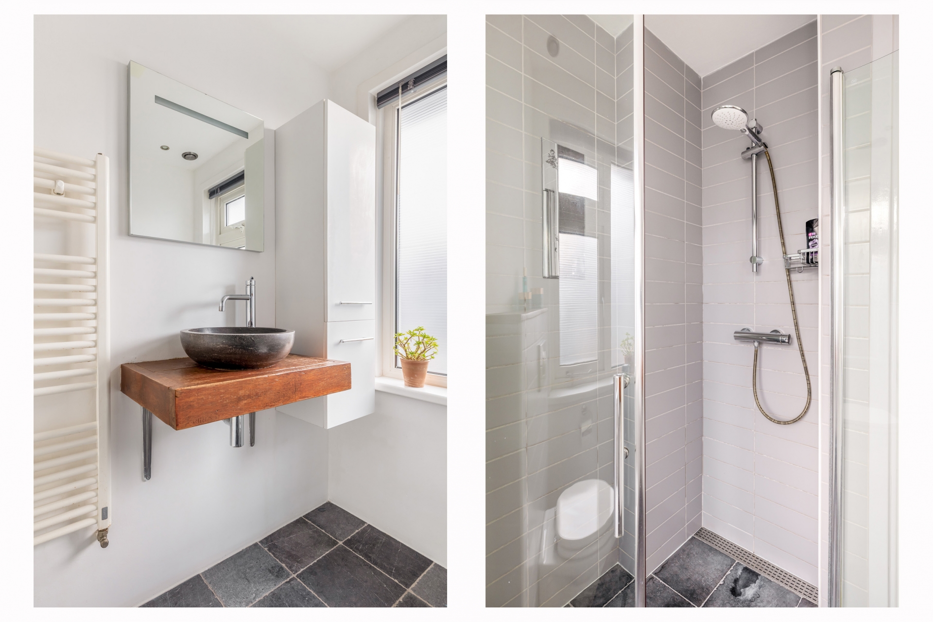 Op de tweede verdieping bevinden zich twee ruime slaapkamers, gelegen aan de voor- en achterzijde. De kamer aan de achterzijde geeft toegang tot een royaal terras, ideaal voor een ontspannen koffiemoment in de zon of om de dag af te sluiten met een borrel. Daarnaast is er nog een derde kamer aan de voorzijde, handig als kinderkamer, werkkamer of inloopkast. De badkamer ligt centraal en beschikt over een douchecabine, wastafel en toilet, praktisch en netjes.