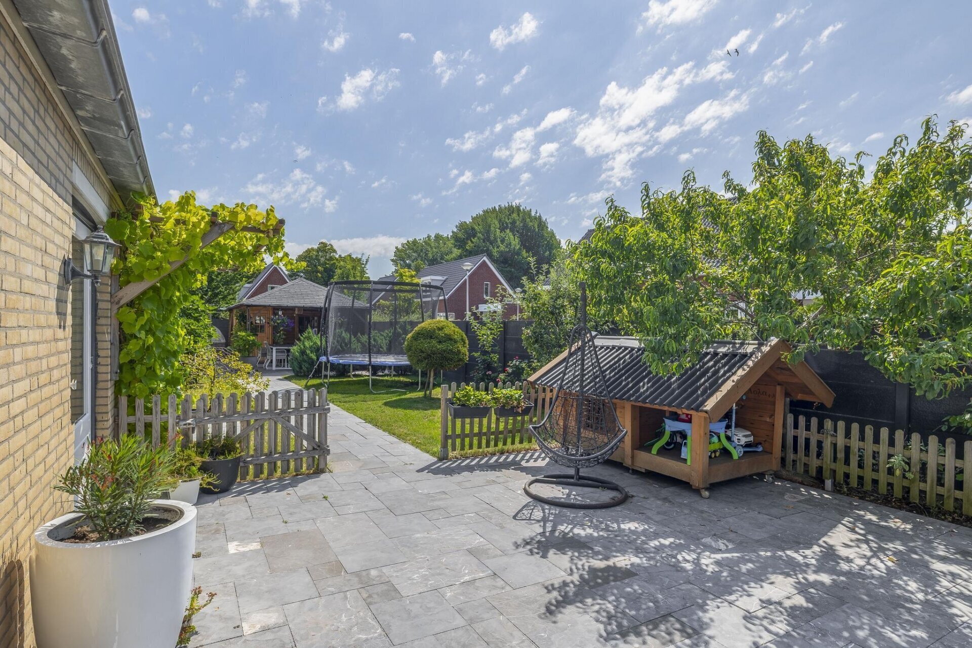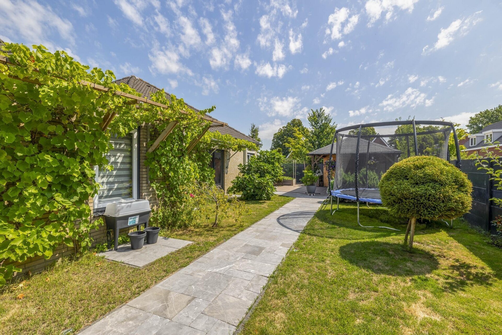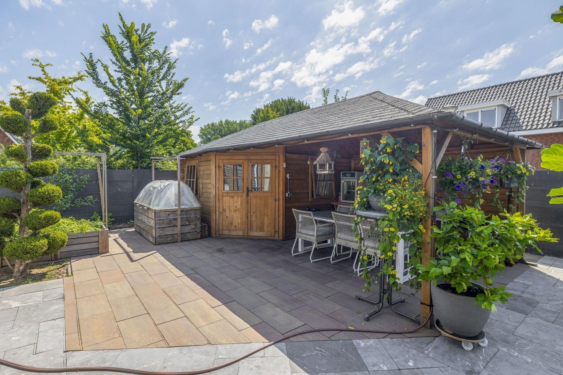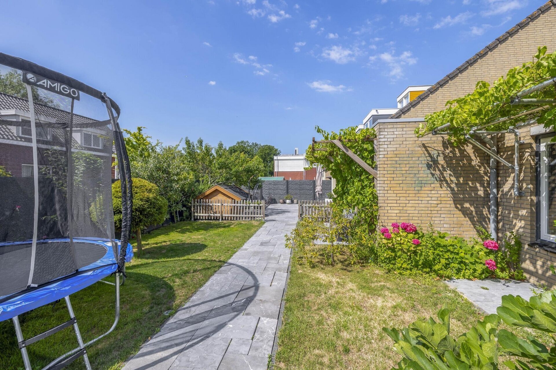 Op het perceel van 750 m² eigen grond is buiten net zo fijn als binnen. De tuin ligt gunstig op het zuiden en is ingericht met een sfeervolle overkapping en een vrijstaande berging voor tuinspullen of fietsen. Dankzij de diepte en ligging van de tuin heb je hier de hele dag zon. Bovendien is er parkeergelegenheid op eigen erf én voldoende openbare parkeerplekken aan de voorzijde van het huis – ideaal voor bezoek of cliënten van je praktijk.