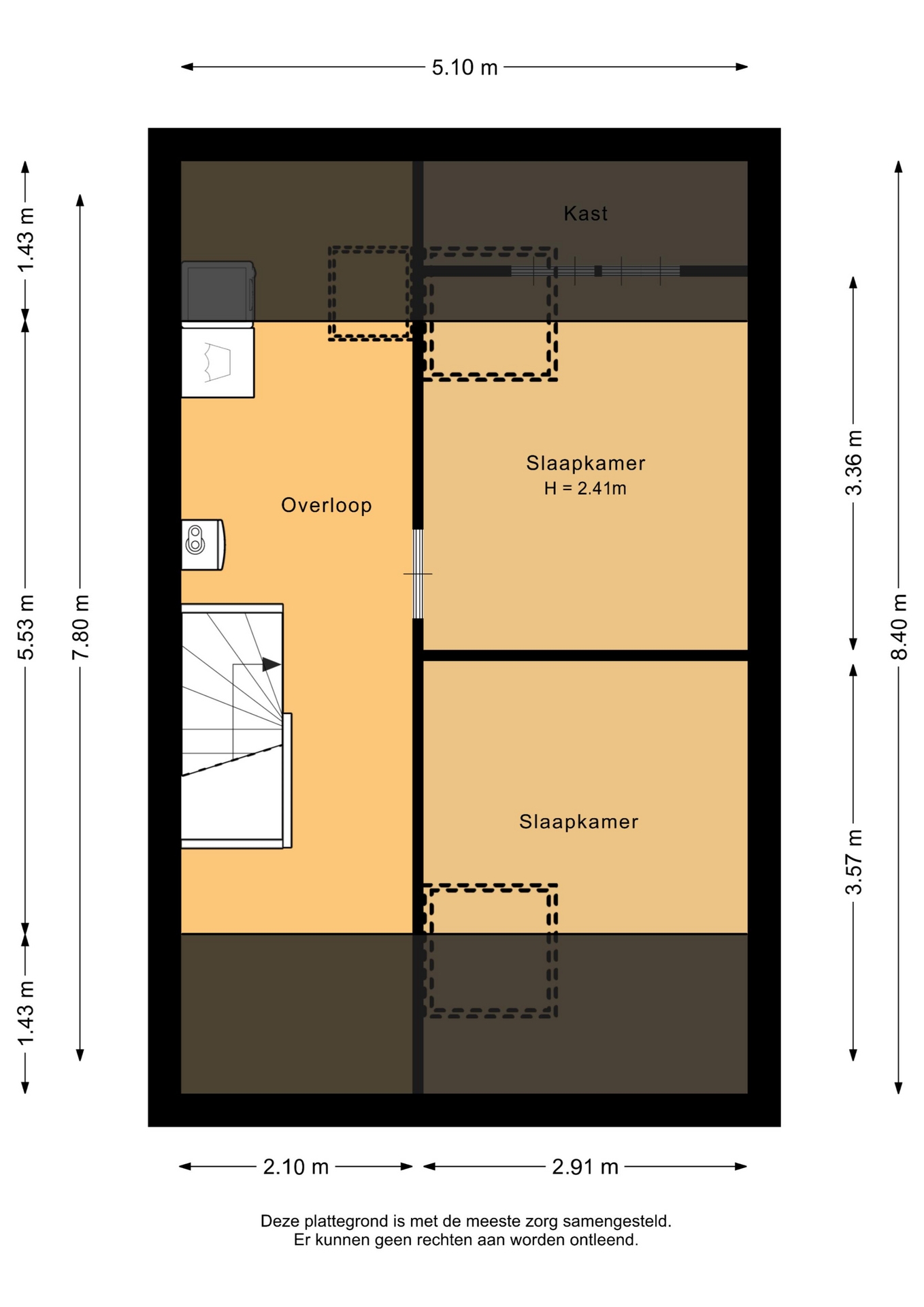 “Deze informatie is door ons met de nodige zorgvuldigheid samengesteld. Onzerzijds wordt echter geen enkele aansprakelijkheid aanvaard voor enige onvolledigheid, onjuistheid of anderszins, dan wel de gevolgen daarvan. Alle opgegeven maten en oppervlakten zijn indicatief.”