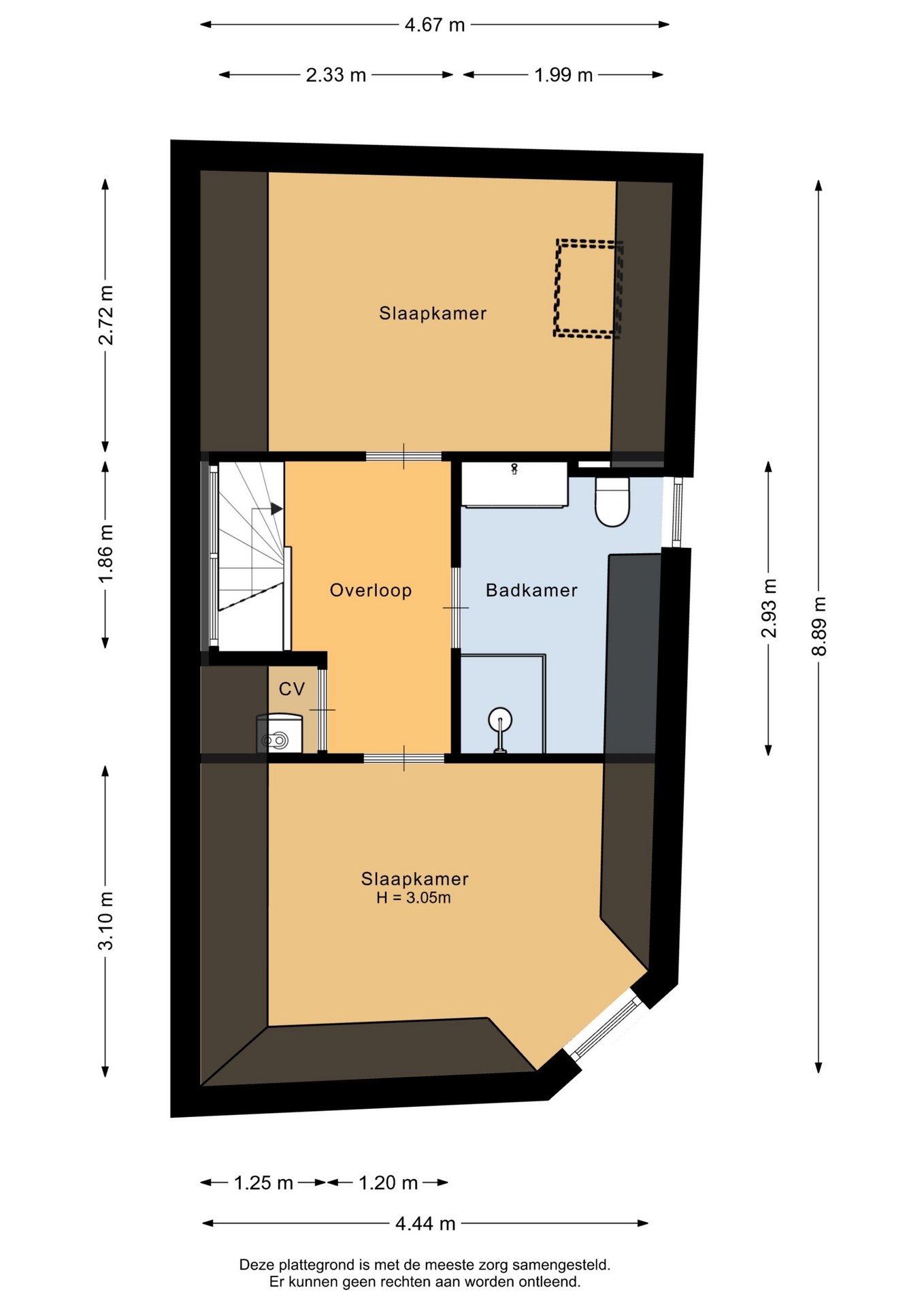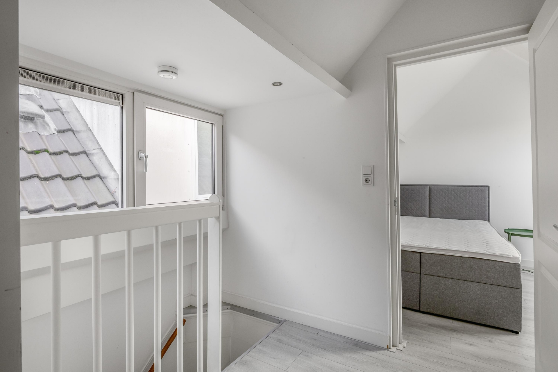 Via de vaste trap bereik je de tweede verdieping waar twee ruime slaapkamers zijn gesitueerd. De slaapkamer aan de voorzijde heeft een charmante erker met uitzicht over de straat. De tweede slaapkamer ligt aan de rustige achterzijde, perfect als kinderkamer, werkkamer of logeerruimte.
