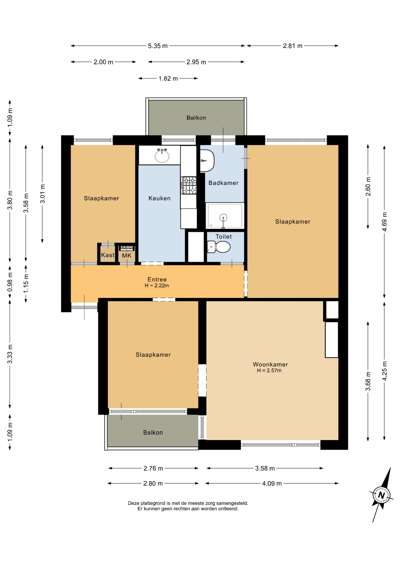“Deze informatie is door ons met de nodige zorgvuldigheid samengesteld. Onzerzijds wordt echter geen enkele aansprakelijkheid aanvaard voor enige onvolledigheid, onjuistheid of anderszins, dan wel de gevolgen daarvan. Alle opgegeven maten en oppervlakten zijn indicatief.”