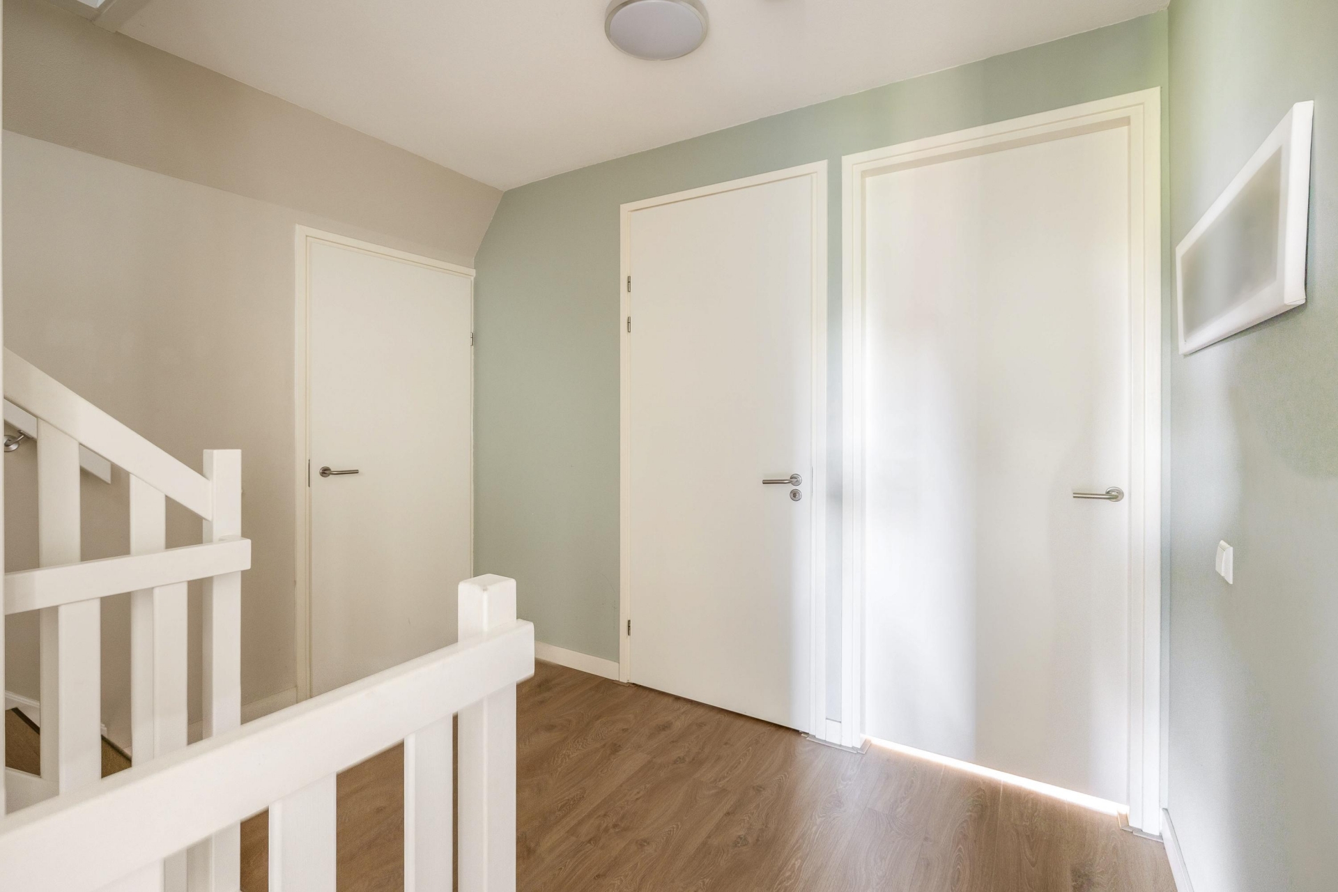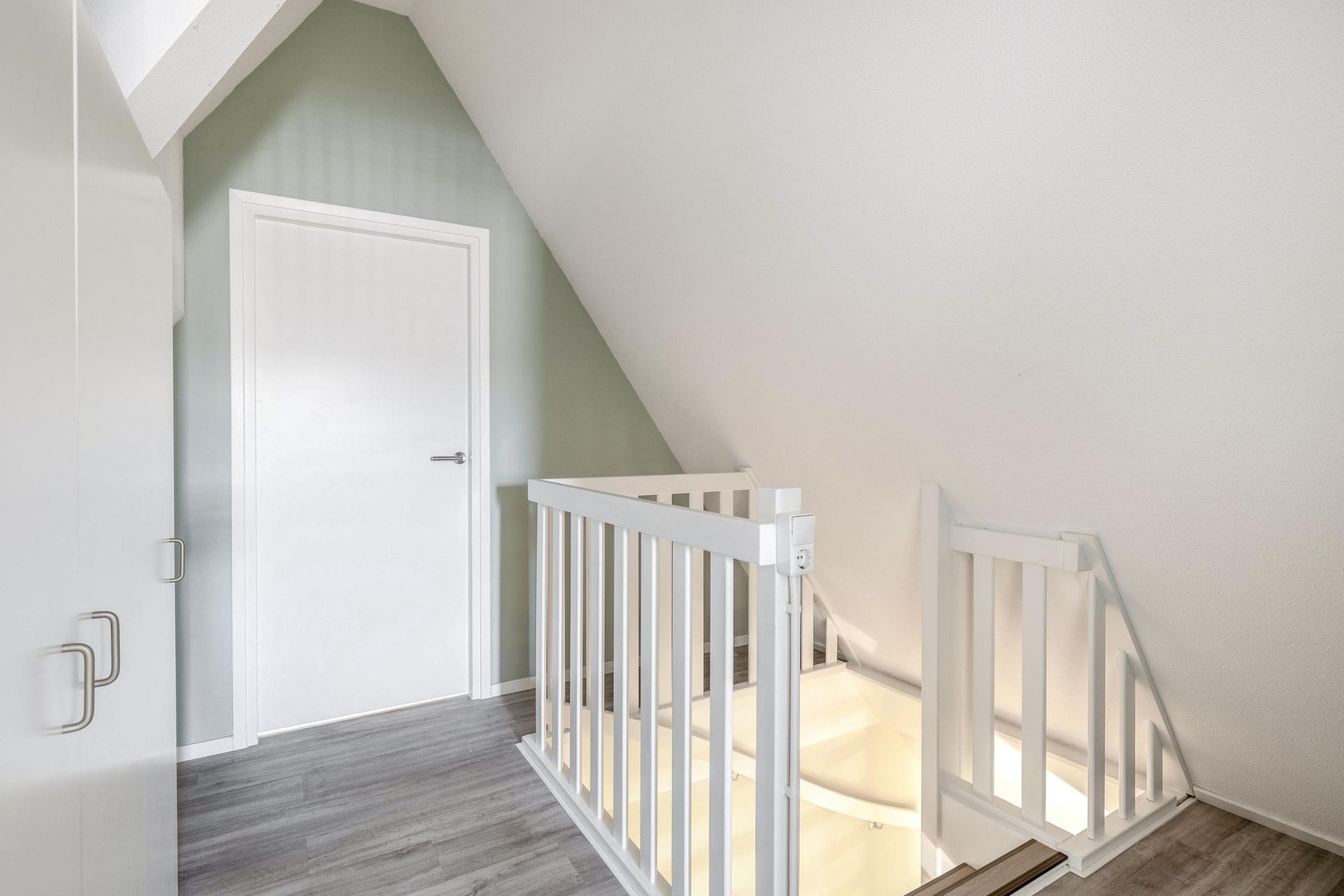De eerste verdieping telt drie ruime slaapkamers, waarvan de grootste zich aan de achterzijde bevindt en uitzicht biedt op de tuin. De andere twee kamers aan de voorzijde zijn perfect als kinderkamer, logeerkamer of werkkamer. De badkamer is eigentijds afgewerkt met een inloopdouche, ligbad, dubbel wastafelmeubel en een tweede toilet.