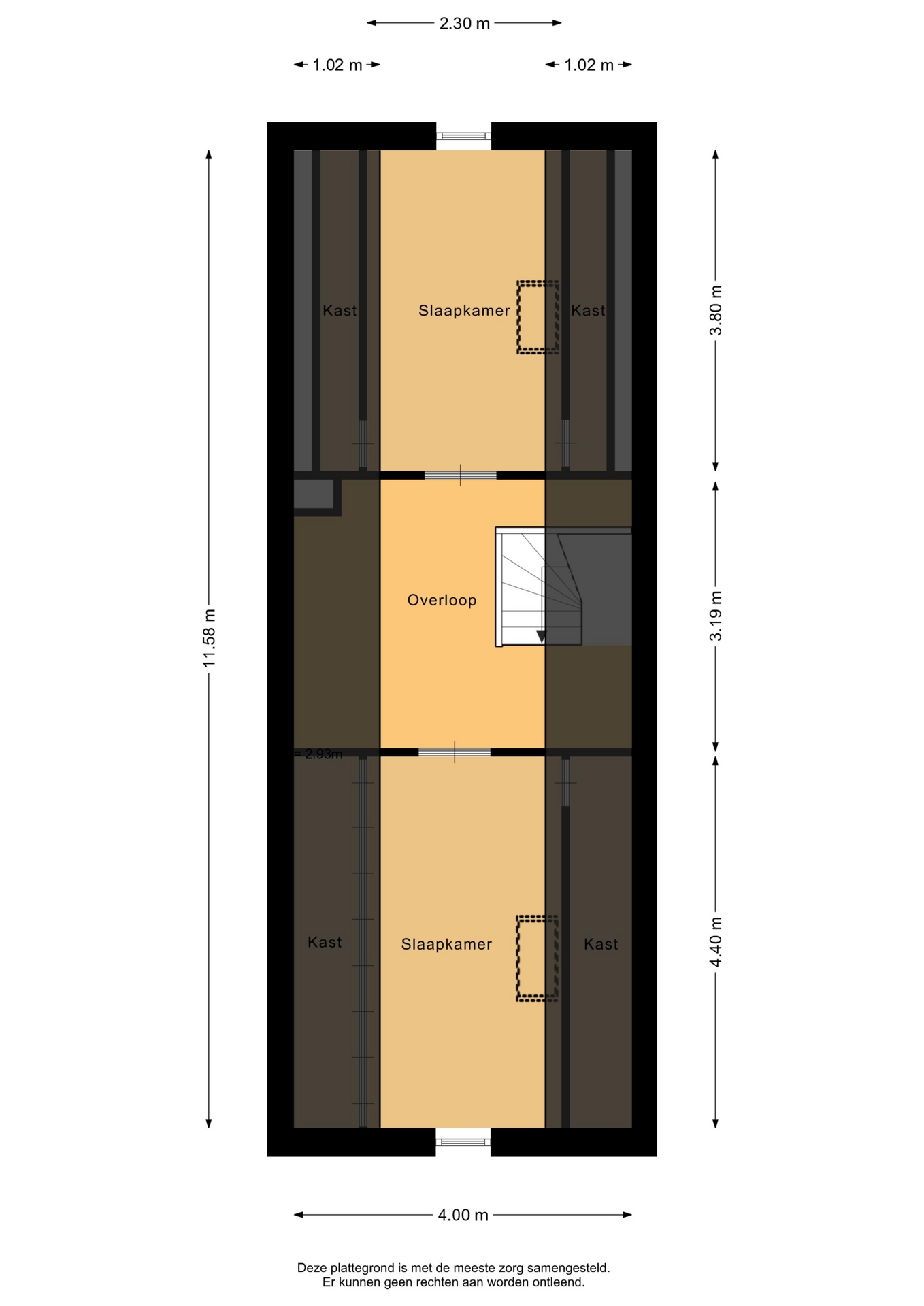 “Deze informatie is door ons met de nodige zorgvuldigheid samengesteld. Onzerzijds wordt echter geen enkele aansprakelijkheid aanvaard voor enige onvolledigheid, onjuistheid of anderszins, dan wel de gevolgen daarvan. Alle opgegeven maten en oppervlakten zijn indicatief.”