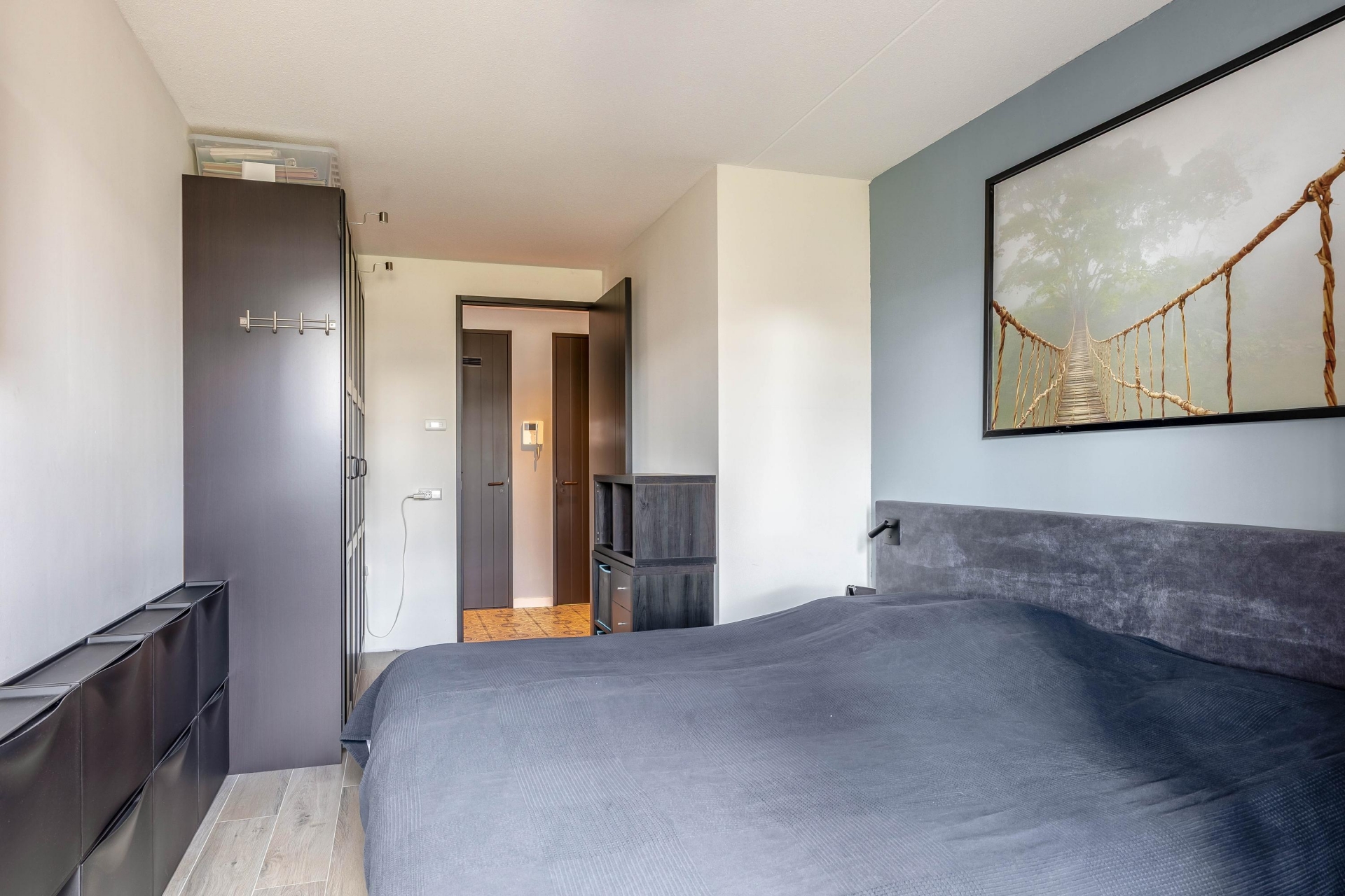 Het appartement beschikt over twee slaapkamers. De hoofdslaapkamer is ruim genoeg voor een tweepersoonsbed en een royale kast. De tweede kamer is ideaal als logeerkamer, hobbyruimte of werkkamer. Het is prettig om net die extra ruimte te hebben voor (klein)kinderen of een rustige werkplek aan huis.