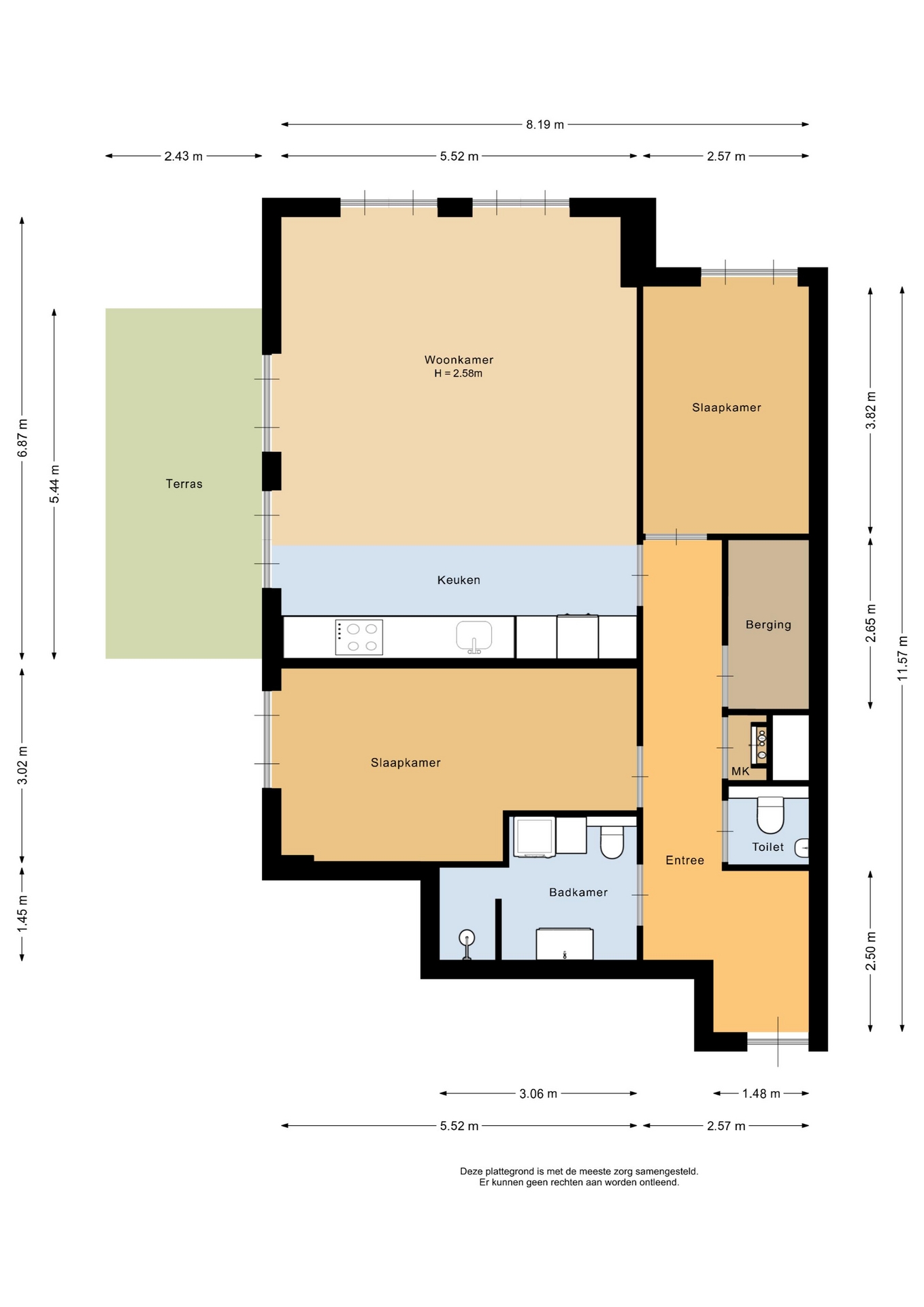 “Deze informatie is door ons met de nodige zorgvuldigheid samengesteld. Onzerzijds wordt echter geen enkele aansprakelijkheid aanvaard voor enige onvolledigheid, onjuistheid of anderszins, dan wel de gevolgen daarvan. Alle opgegeven maten en oppervlakten zijn indicatief.”
