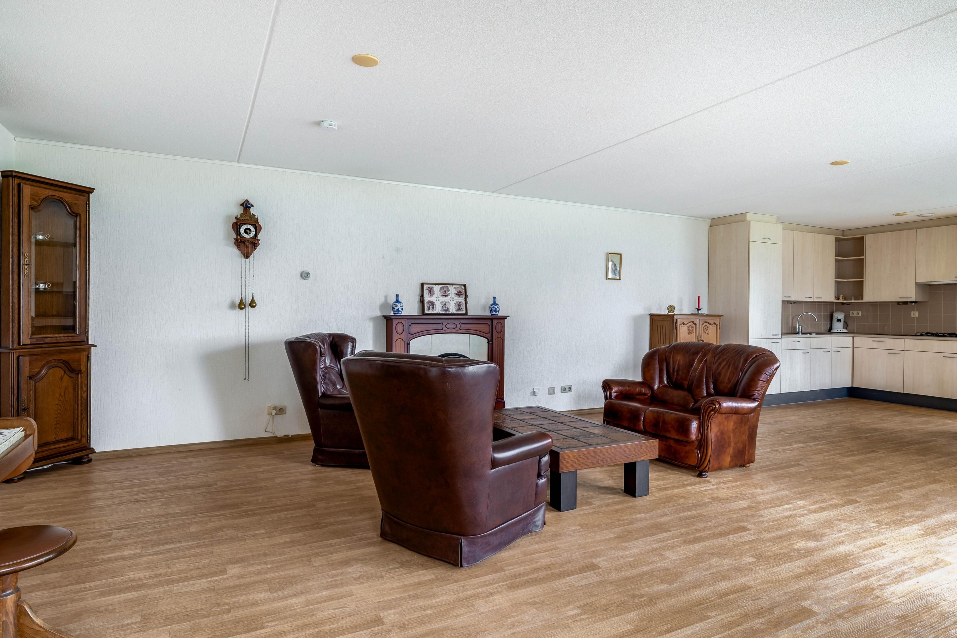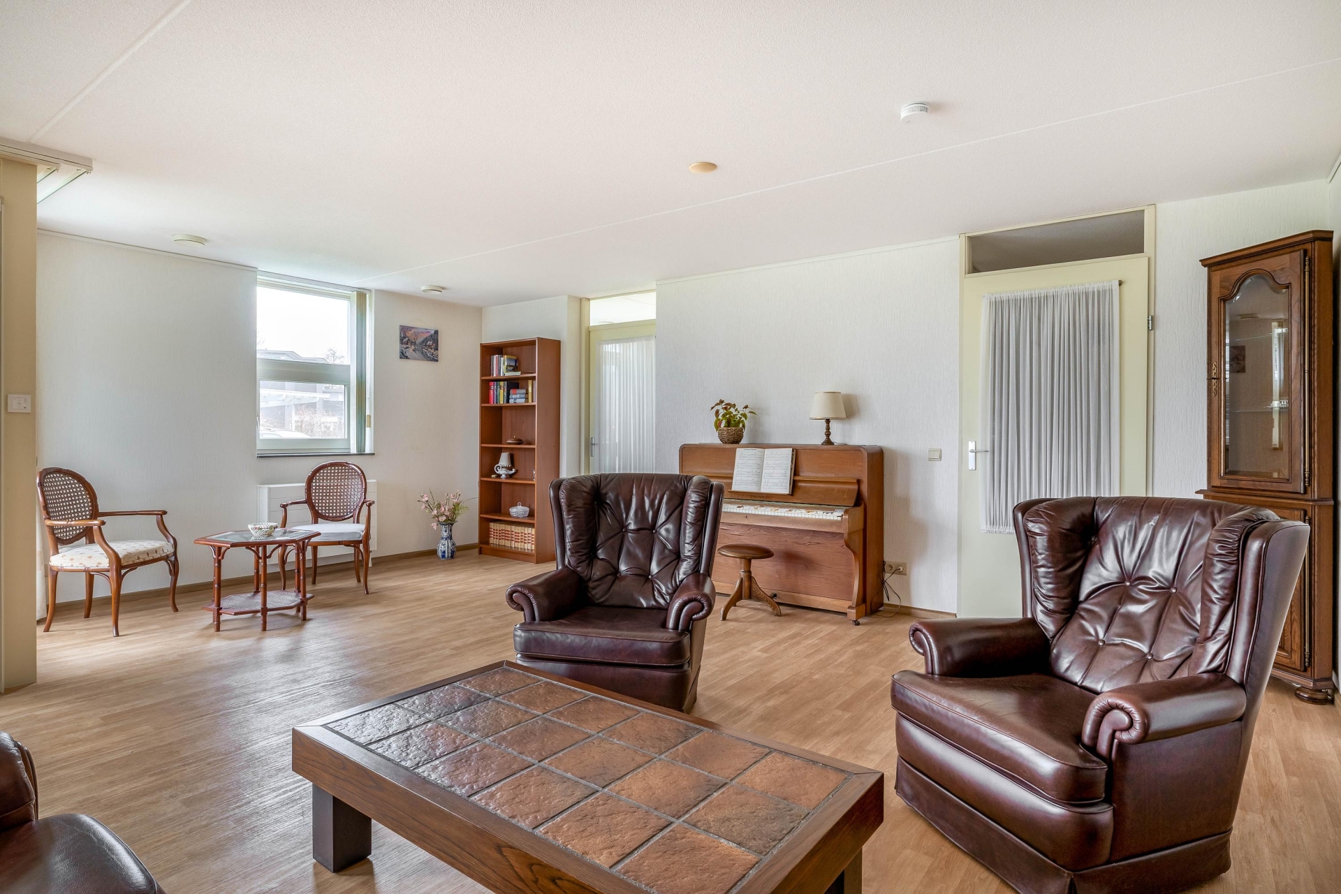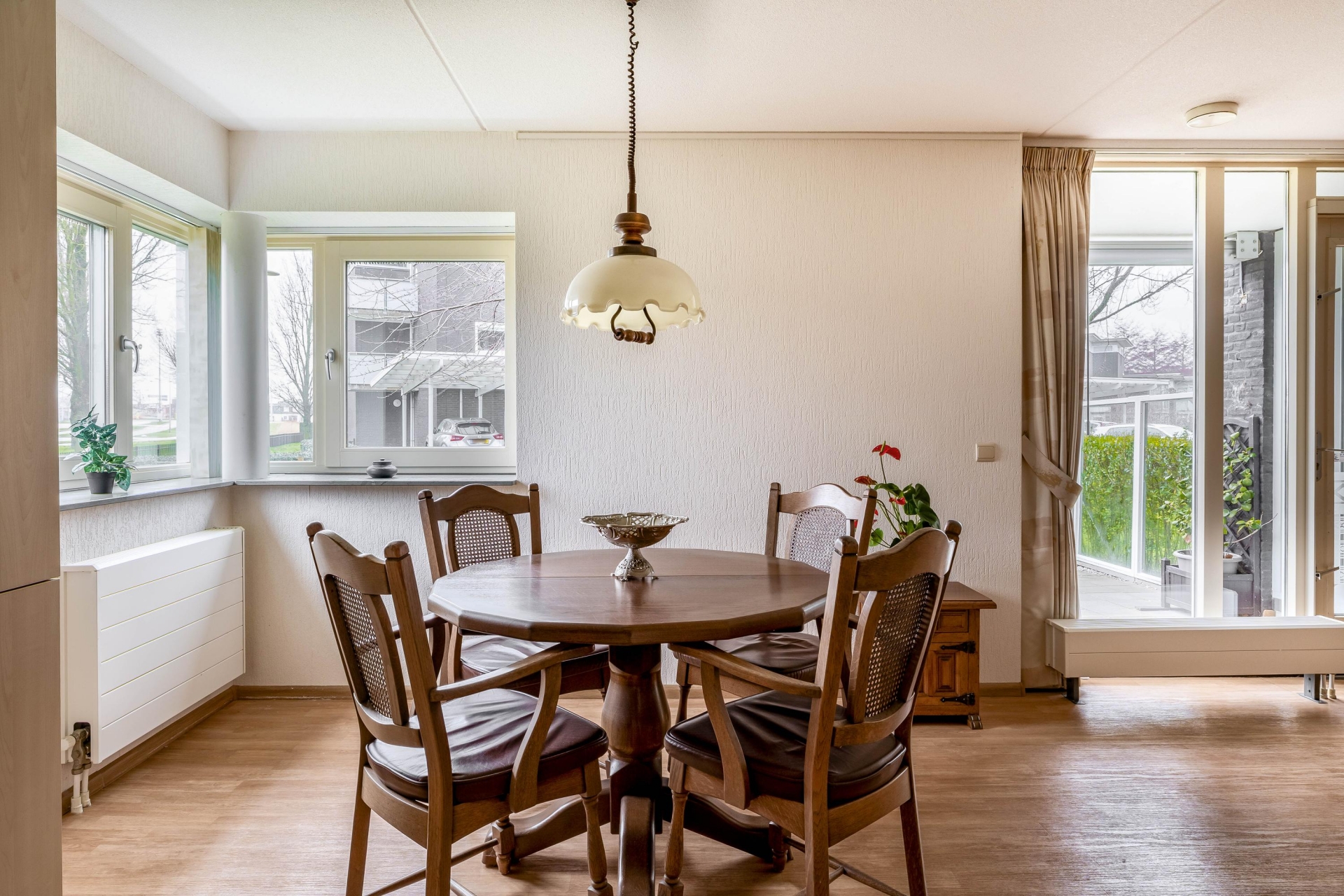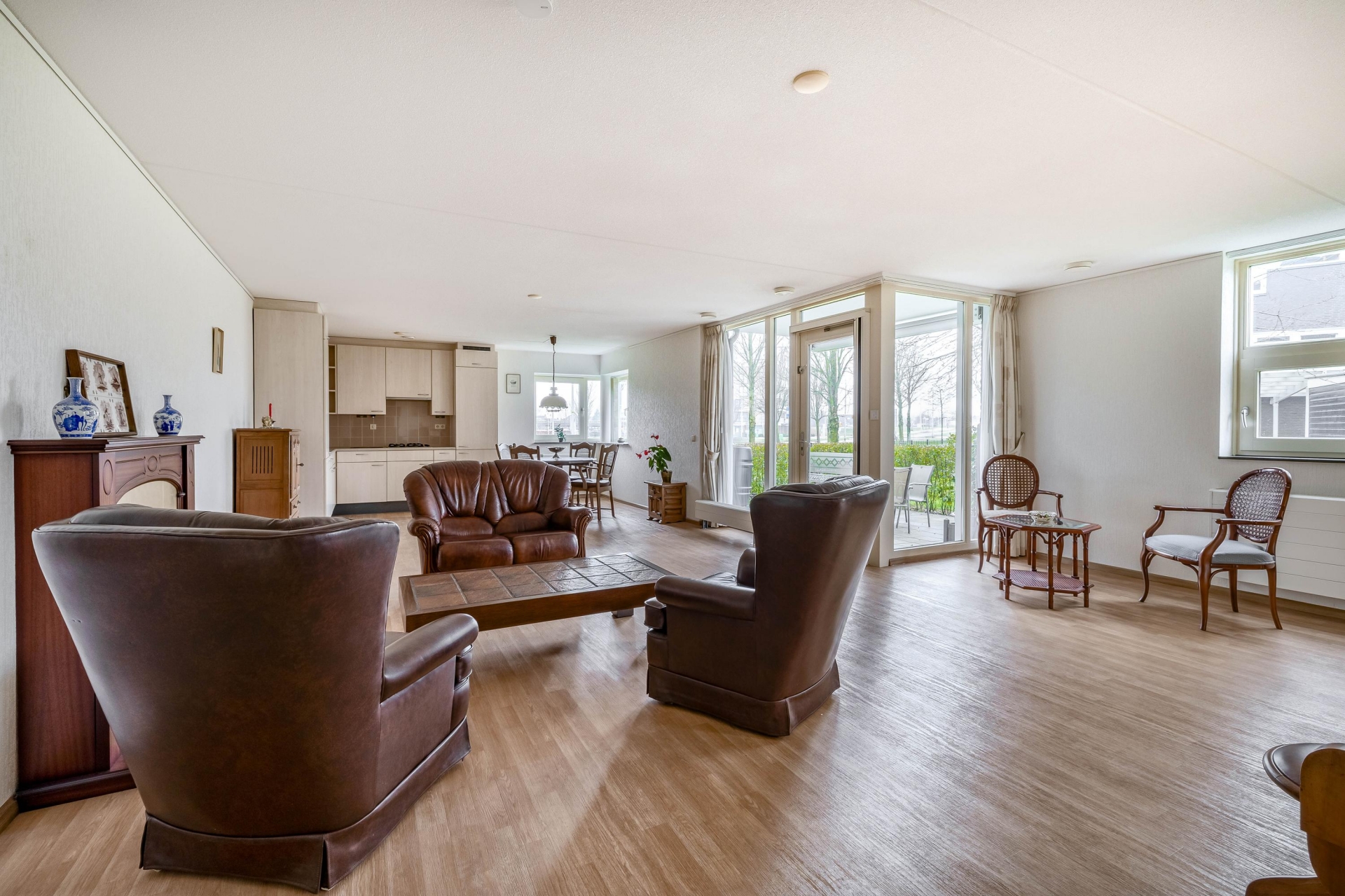 De woonkamer is ruim opgezet en heerlijk licht door de grote raampartijen aan de tuinzijde. De indeling biedt volop mogelijkheden voor een royale zithoek en een aparte eethoek. Vanuit de woonkamer loop je direct de tuin in, waardoor binnen en buiten mooi in elkaar overlopen. Dit zorgt niet alleen voor veel daglicht, maar ook voor een prettig en open gevoel in huis.