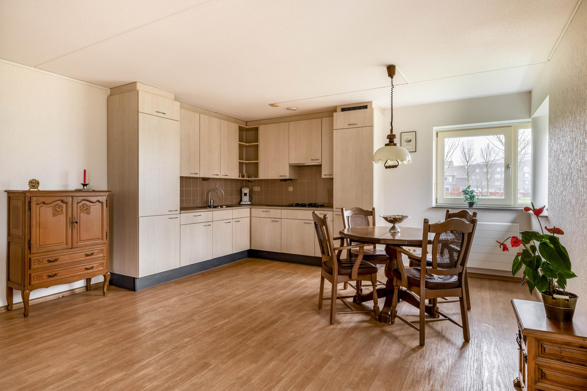 De afwerking is verzorgd en neutraal, waardoor je hier gemakkelijk je eigen stijl kunt toevoegen. Of je nu houdt van modern, klassiek of een mix daarvan: deze ruimte vormt een fijne basis. Door de rustige ligging in het park kijk je vanuit de woonkamer uit op groen, wat bijdraagt aan het ontspannen woongevoel.