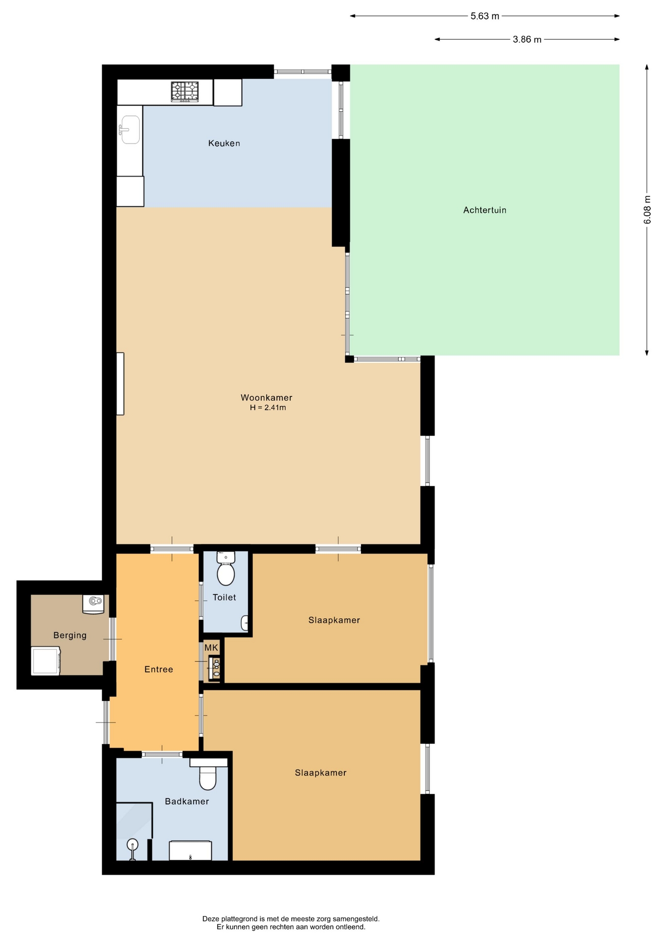 “Deze informatie is door ons met de nodige zorgvuldigheid samengesteld. Onzerzijds wordt echter geen enkele aansprakelijkheid aanvaard voor enige onvolledigheid, onjuistheid of anderszins, dan wel de gevolgen daarvan. Alle opgegeven maten en oppervlakten zijn indicatief.”