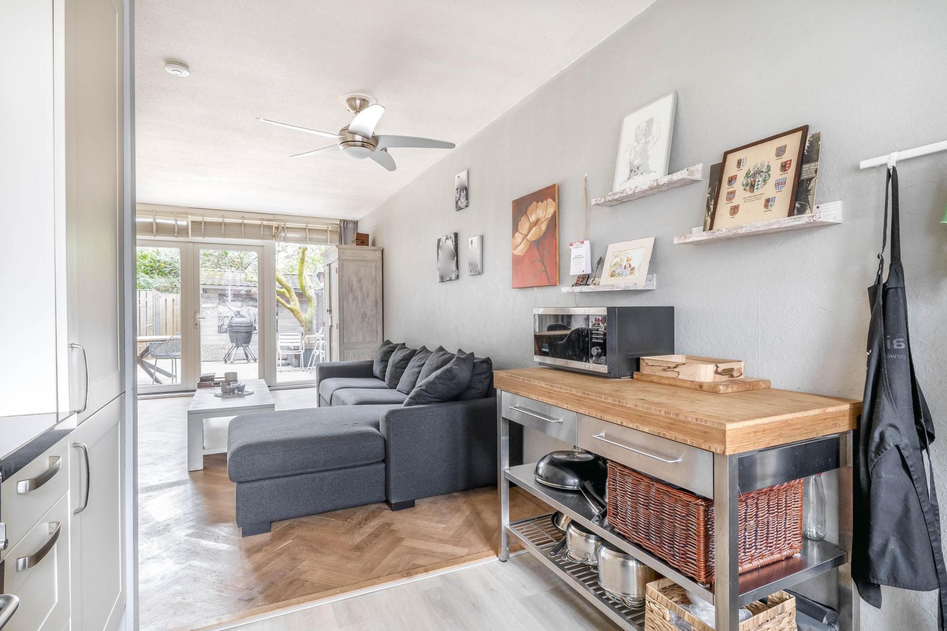 Wat direct opvalt bij dit huis is de fijne breedte en de hoeveelheid licht. De woonkamer aan de achterzijde is ruim opgezet en biedt met circa 28 m² alle ruimte voor een comfortabele zithoek en een grote eettafel. Dankzij de brede pui naar de tuin valt het daglicht hier rijkelijk naar binnen, wat zorgt voor een prettige en open sfeer.