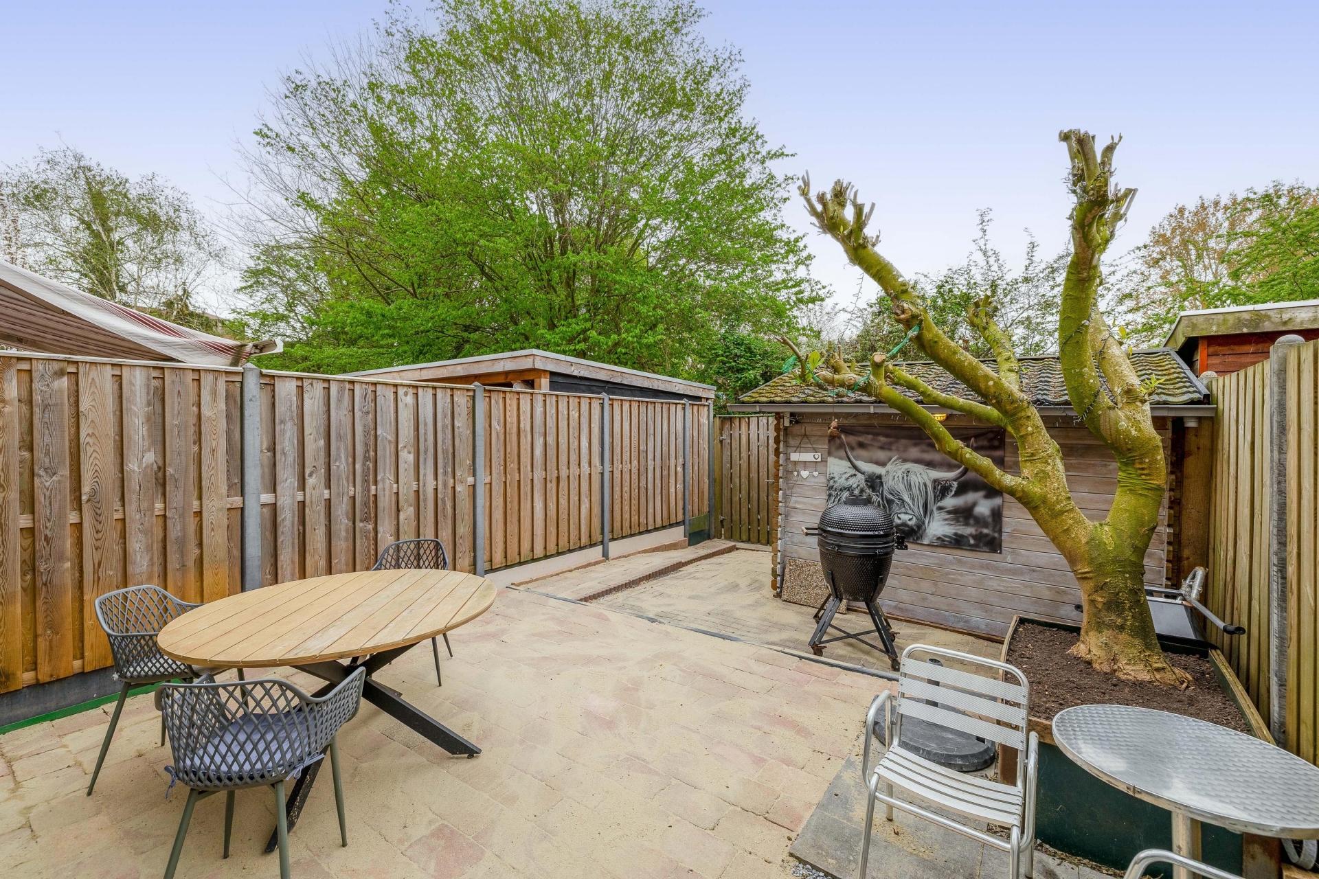 Achterin de tuin bevinden zich een extra houten schuur, ideaal voor extra opslag. Daarnaast is er een handige achterom aanwezig.