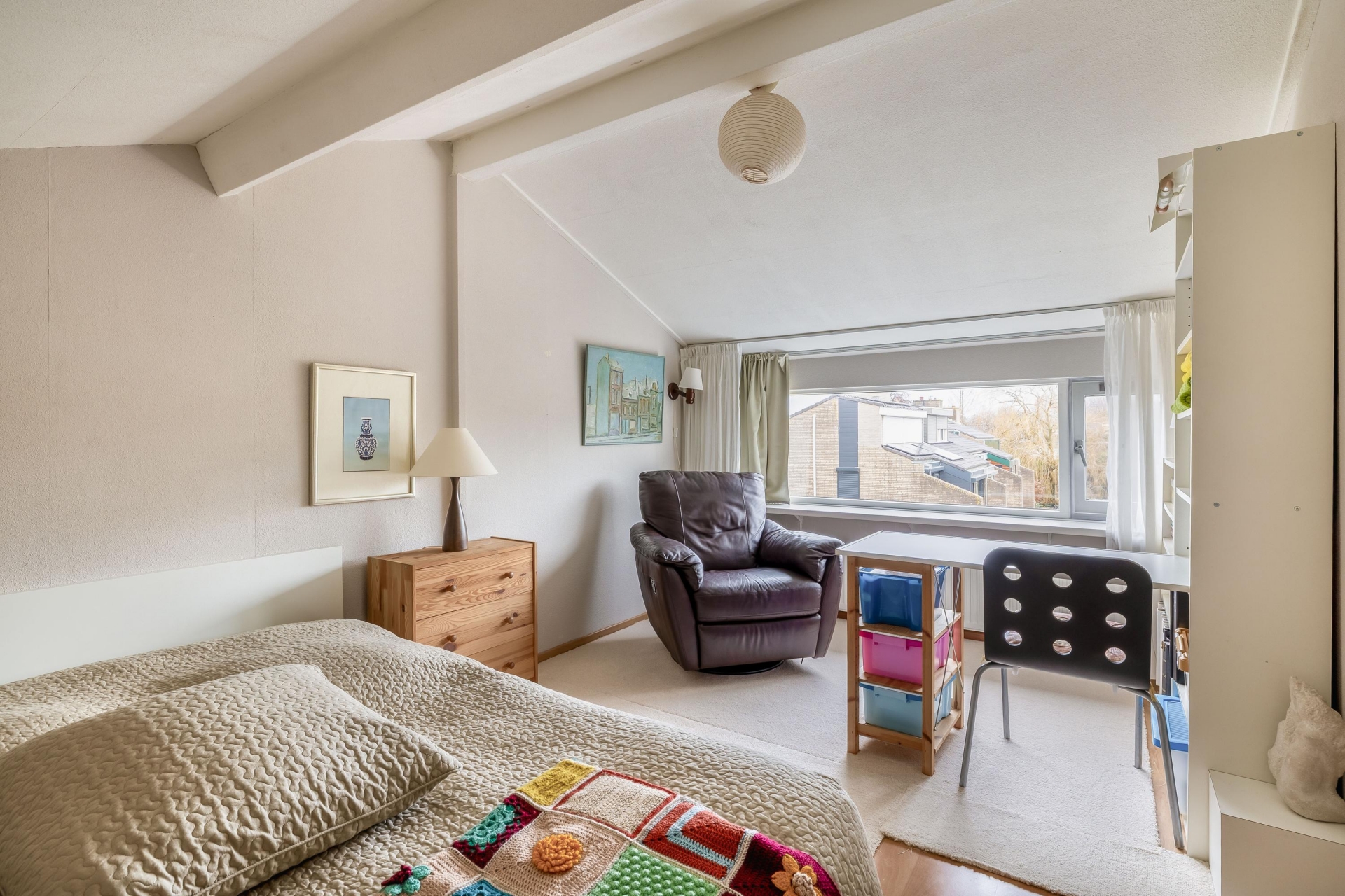 Binnen valt direct op hoe ruim dit huis is opgezet. Met een woonoppervlakte van 157 m², verdeeld over twee verdiepingen, zijn de leefruimtes royaal en praktisch ingedeeld. De woonkamer biedt volop ruimte voor een grote zithoek en eettafel, en dankzij de grote raampartijen is het binnen aangenaam licht. Aan de voorzijde kijk je uit op een rustige straat, terwijl de achterzijde grenst aan de ruime, fraai aangelegde achtertuin (met achterom). Op de verdiepingen vind je maar liefst vijf slaapkamers, waarvan meerdere geschikt zijn als volwaardige tweepersoonskamers. Ideaal voor een groter gezin of wie behoefte heeft aan een werkkamer of logeerkamer.