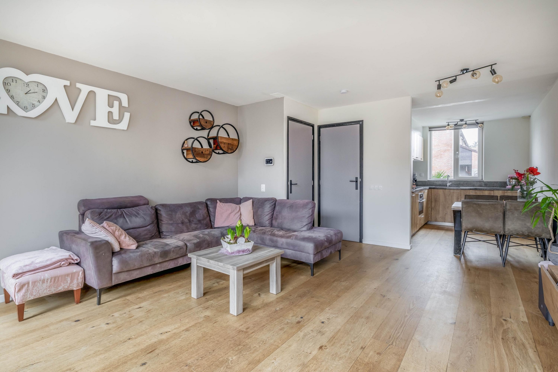 Overal in het huis ligt een nette laminaatvloer, de binnendeuren zijn vernieuwd en voorzien van houten kozijnen, en het geheel is strak en modern afgewerkt. De kunststof kozijnen met HR++ glas (2017) dragen bij aan het onderhoudsarme karakter én zorgen voor een energiezuinig geheel.