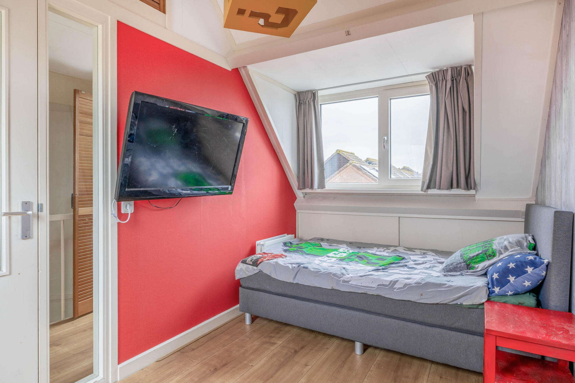 De woning telt drie slaapkamers, verdeeld over de eerste en tweede verdieping. De ouderslaapkamer bevindt zich op de eerste verdieping en is voorzien van twee grote dakramen die zorgen voor een mooie lichtinval. Daarnaast is er nog een ruime kamer op de eerste verdieping. De derde slaapkamer met dakkapel ligt op de zolderverdieping en ook deze is mooi ruim.