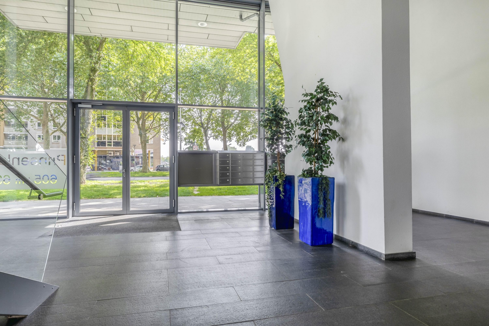 CENTRALE HAL: Vanuit de stijlvolle entree loop je zo door naar het trappenhuis, de liften en de inpandige parkeergarage; uiteraard afgesloten en alleen toegankelijk voor bewoners. Alles is strak verzorgd en praktisch ingedeeld.