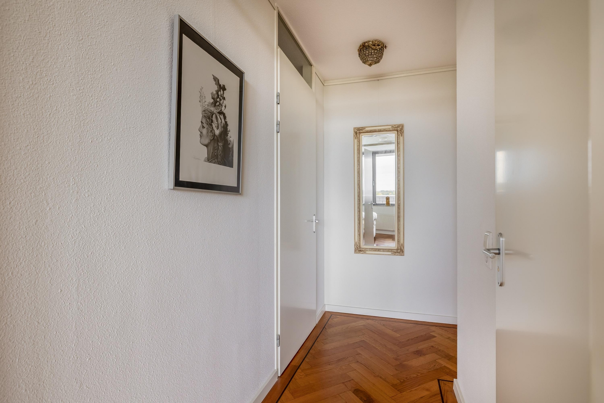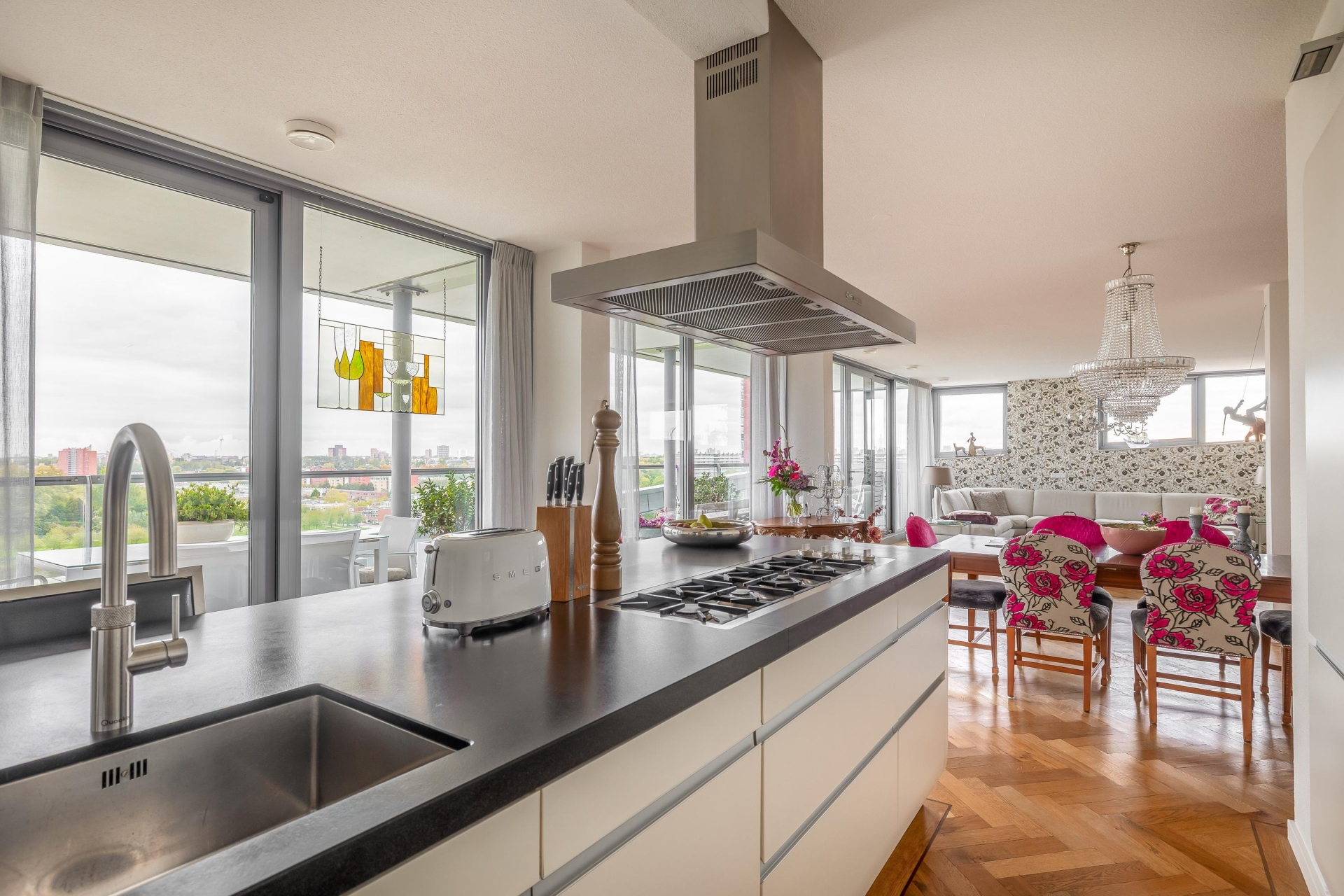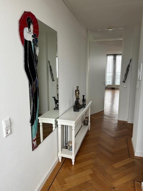Bij binnenkomst van het appartement treft u een ruime hal welke toegang biedt tot 2 slaapkamers en de meterkast. Aan het einde van de hal komt u uit in de ruime woonkamer met moderne open keuken. Bij binnenkomst in de woonkamer word je direct verwelkomd door een zee van licht, dankzij de grote raampartijen die een panoramisch uitzicht bieden. Het appartement heeft een gunstige hoekligging in het complex, hierdoor lopen er geen andere bewoners langs het appartement en beschikken diverse ruimtes over extra ramen in de zijgevel. De keuken beschikt over alle benodigde inbouwapparatuur. Vanuit de keuken is er tevens ook toegang tot de wasruimte, waar zich de opstelling voor de wasmachine, droger, cv-ketel en de WTW-unit bevinden.