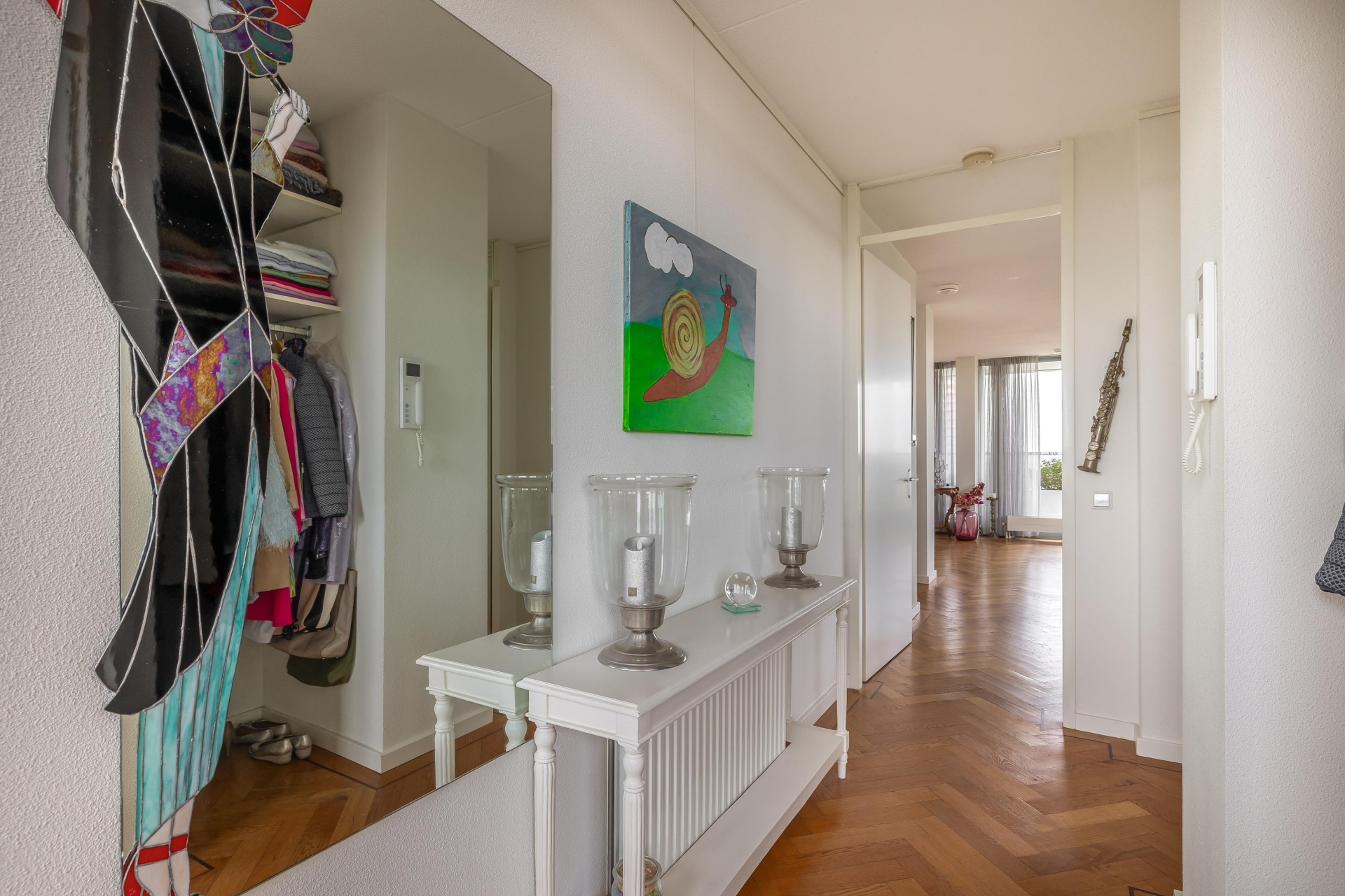 Bij binnenkomst van het appartement treft u een ruime hal welke toegang biedt tot 2 slaapkamers en de meterkast. Aan het einde van de hal komt u uit in de ruime woonkamer met moderne open keuken. Bij binnenkomst in de woonkamer word je direct verwelkomd door een zee van licht, dankzij de grote raampartijen die een panoramisch uitzicht bieden. Het appartement heeft een gunstige hoekligging in het complex, hierdoor lopen er geen andere bewoners langs het appartement en beschikken diverse ruimtes over extra ramen in de zijgevel. De keuken beschikt over alle benodigde inbouwapparatuur. Vanuit de keuken is er tevens ook toegang tot de wasruimte, waar zich de opstelling voor de wasmachine, droger, cv-ketel en de WTW-unit bevinden.