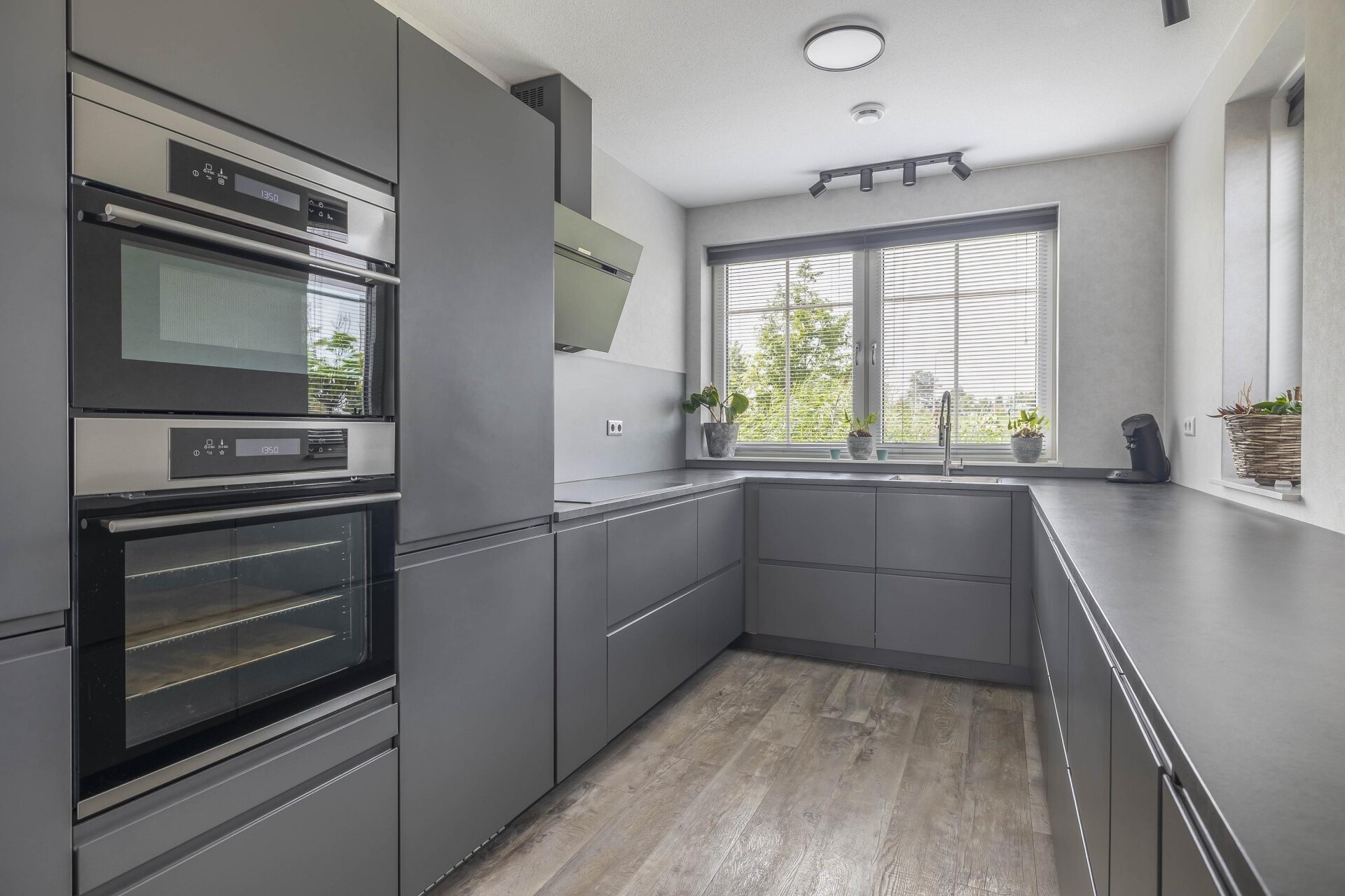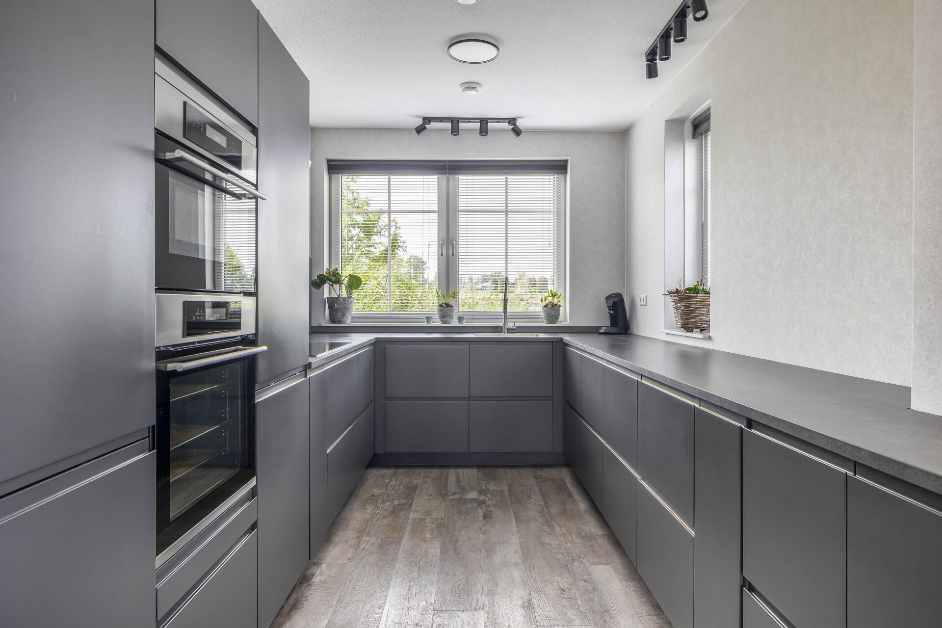 De keuken is gesitueerd aan de voorzijde van de woning en is een U-opstelling. De ruime keuken is voorzien van diverse inbouwapparatuur zoals heteluchtoven, combimagnetron, Boretti inductie kookplaat, wandafzuigkap, vaatwasser, hoge inbouwkoelkast en een hoge inbouw vriezer.