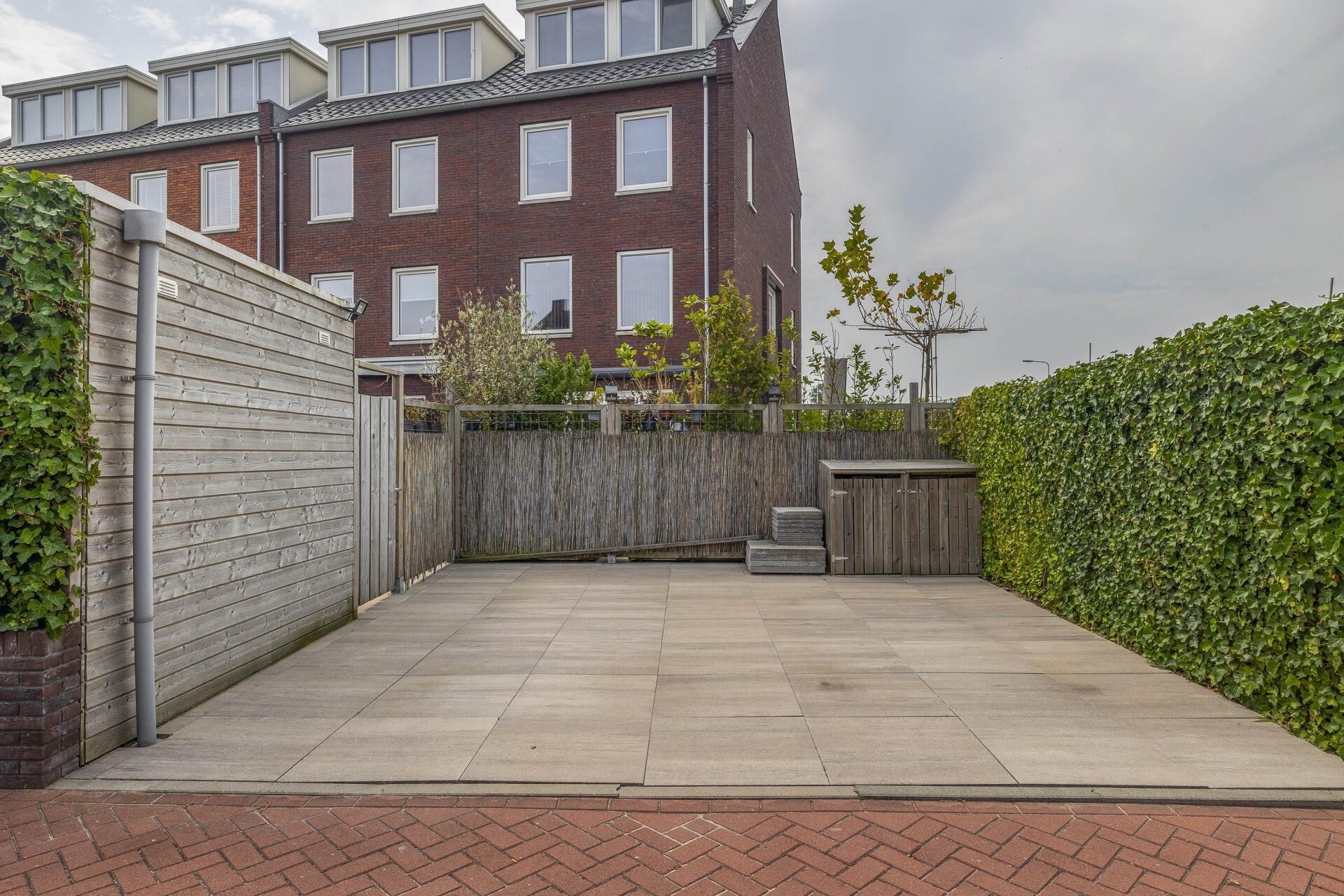 Via de openslaande deuren bereikt u de ruime achtertuin. Deze is volledig bestraat en daardoor onderhoudsvriendelijk ingericht. Achter in de tuin staat een houten berging met elektra, ideaal voor het opbergen van fietsen en tuingereedschap. Daarnaast biedt het perceel de mogelijkheid om op eigen terrein te parkeren d.m.v. 2 ruime parkeerplaatsen (36m2), wat natuurlijk erg praktisch is.