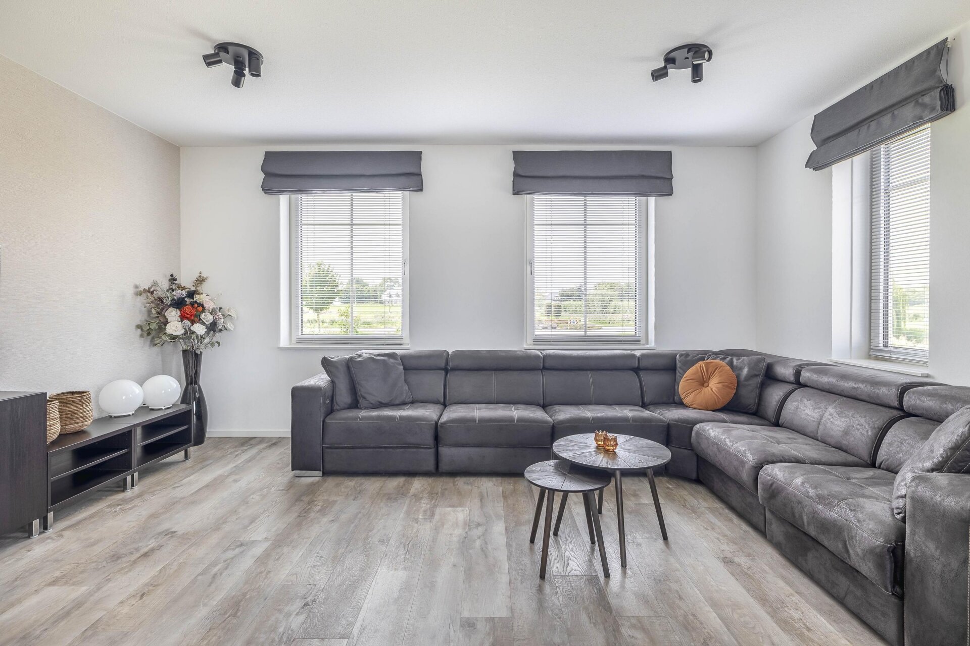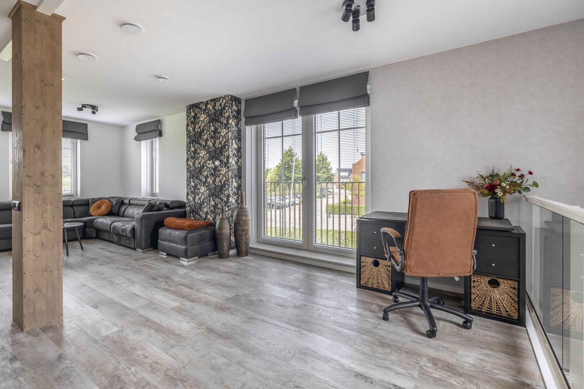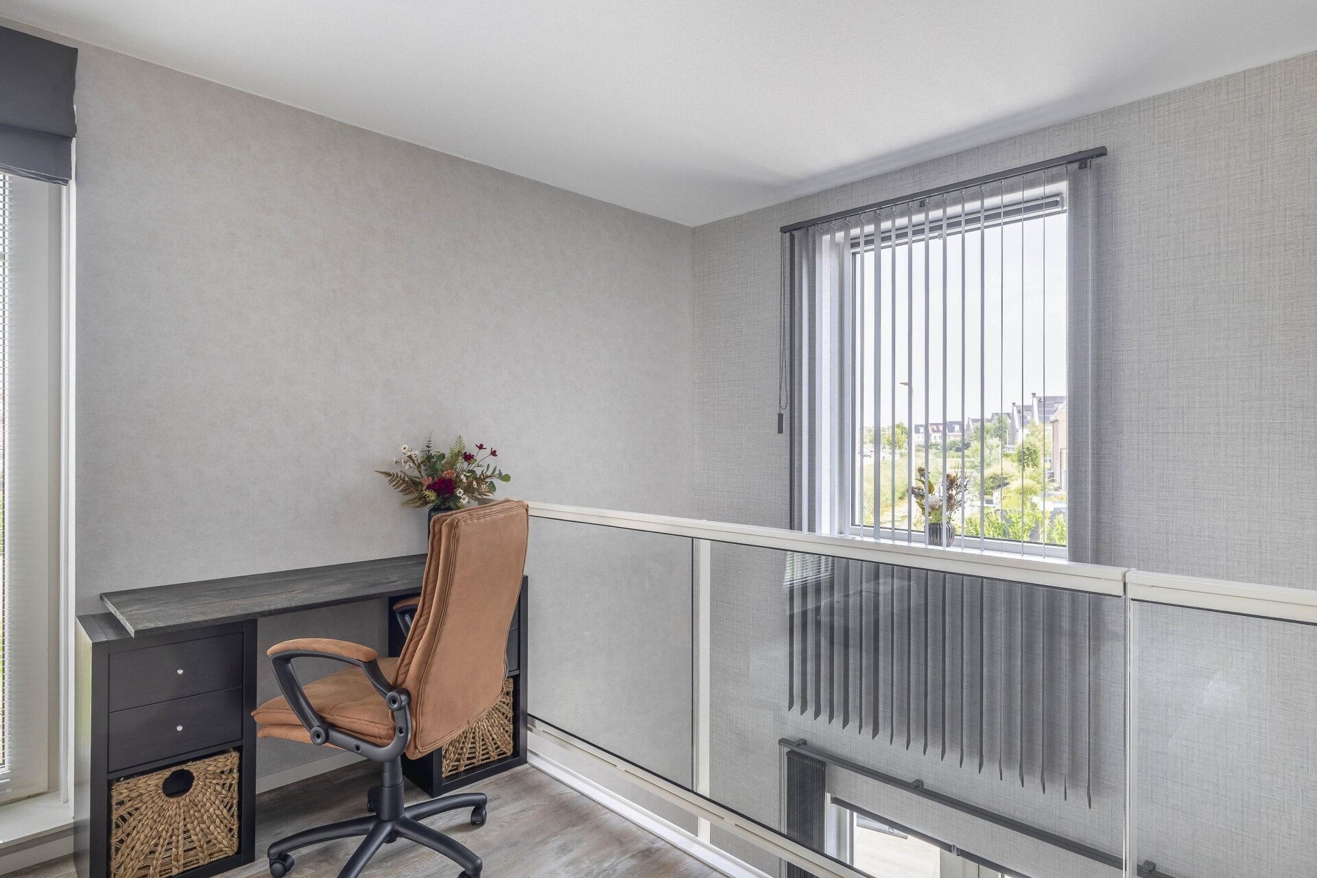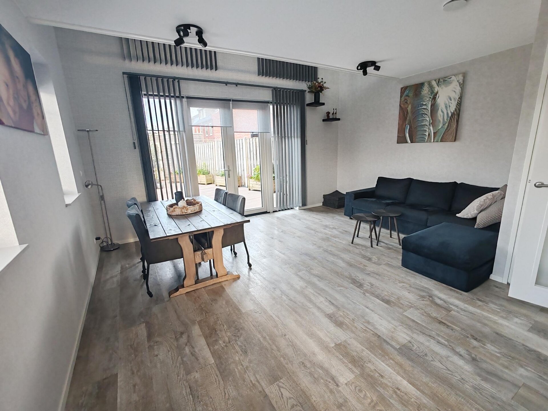 Vanuit de woonkamer is er een directe verbinding met de ruime en lichte woonkamer op de eerste verdieping door de woningbrede vide, die zorgt voor extra lichtinval en een ruimtelijk gevoel.