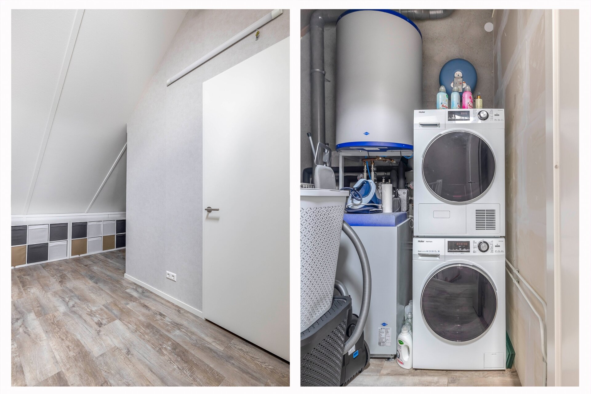 De zolderverdieping is ruim opgezet en heeft een grote overloop. Ook bevindt zich daar de ruime 4e slaapkamer met brede dakkapel. Op de overloop is een aparte afsluitbare technische ruimte waar de bodem warmtepomp, WTW-installatie, elektrische boiler en wasmachine/droger aansluiting zich bevinden. De zolder heeft veel lichtinval door het extra Velux dakvenster in de nok van het dak.